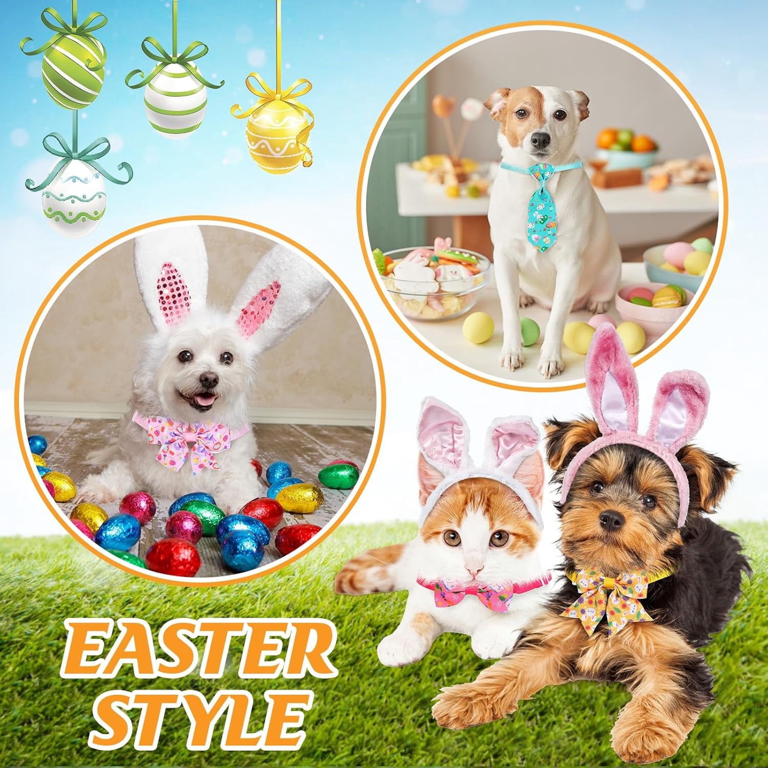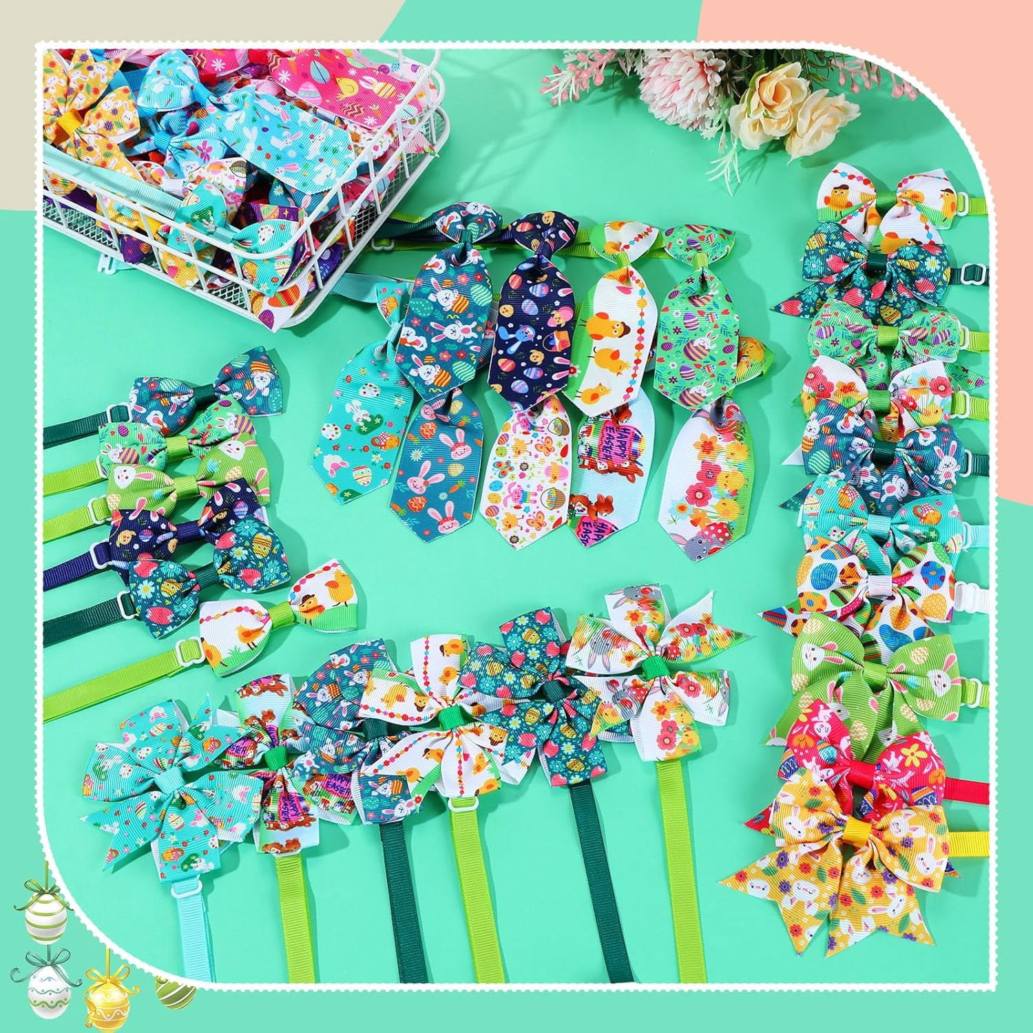 120 Pcs Easter Dog Bow Tie Collar Set Swallowtails Bunny Easter Egg Patterns Bow Ties Collars Pet Holiday Accessories for Doggy Cat