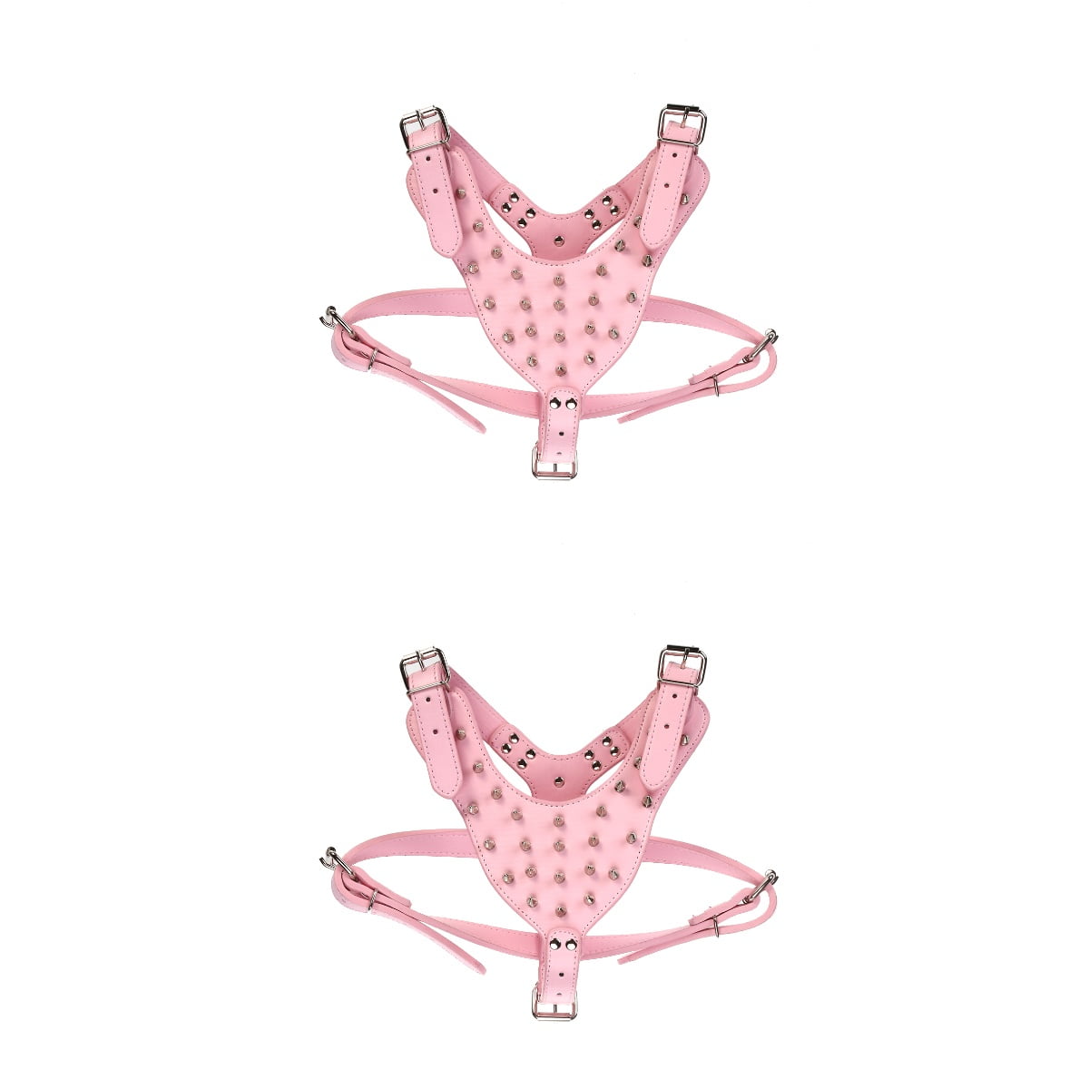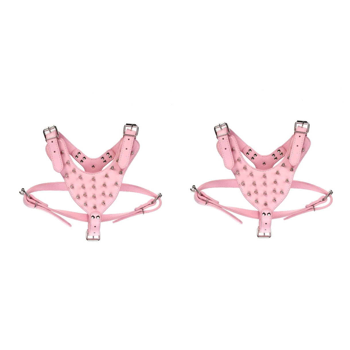- 2 * Spike Studded PU Dog Harness for Terrier (Pink)- harness