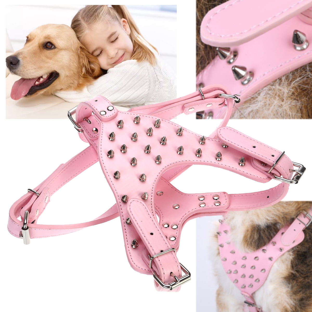- Color: Mainly pink. Material: PU, stainless steel. – Pitbull harness