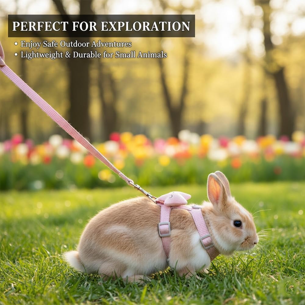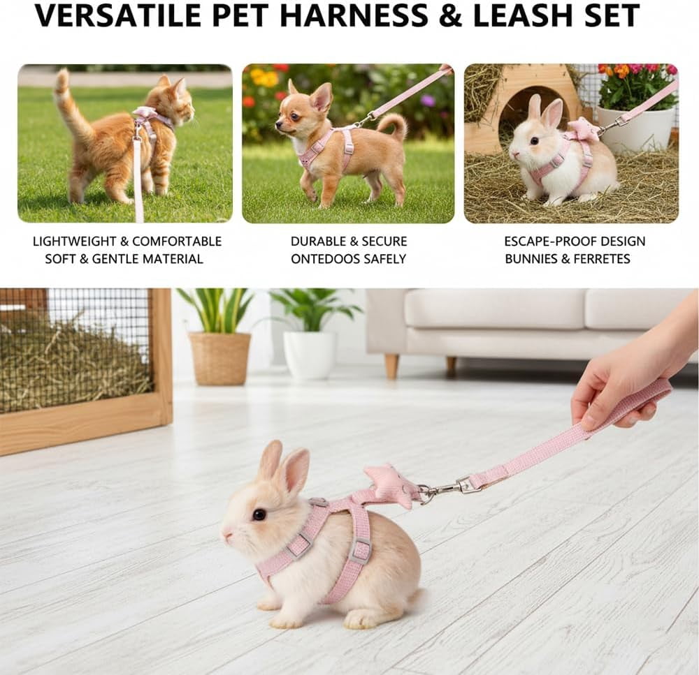 2-Pack Adjustable Rabbit Harness Set – Escape-Proof Vest Harness for Small Pets, Comfortable & Durable Bunny Leash for Walking, Running (Guinea Pigs, Ferrets)