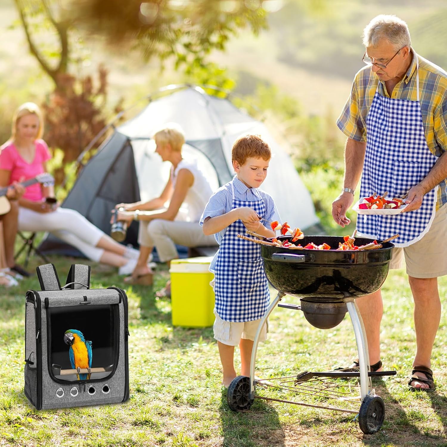- CLEAN & PERCHING: The bird carrier will come with Plate, iron net, birdseed cup and a perch to help you keep clean when you travel and a comfortable travel for your bird.