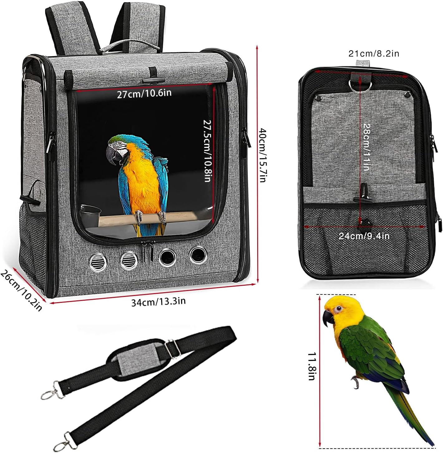 - LARGE WINDOWS & BREATHABLE MESH: Roll up the sunshade of the bird travel cage and fix it.You can check the status of your pet at any time through the transparent window.The side of the bag is equipped with anti scratch ventilation net to ensure sufficient air circulation and wide vision in the bag.