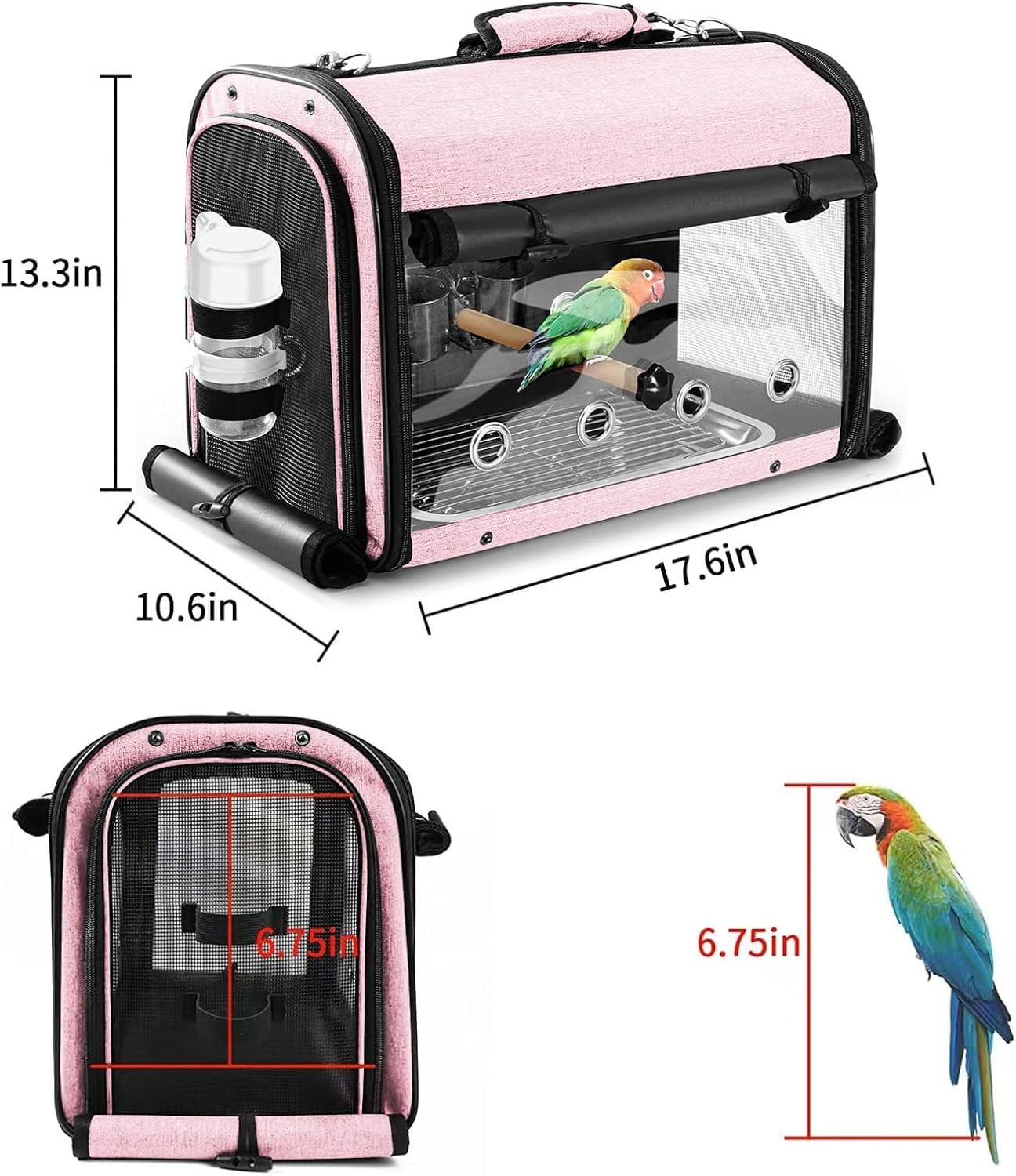 Bird Carrier Bag Bird Travel Cage with Stand, Lightweight Backpack for Parrot, Portable Bird Travel Bag, Pet Transparent Breathable Travel Cage, Pink
