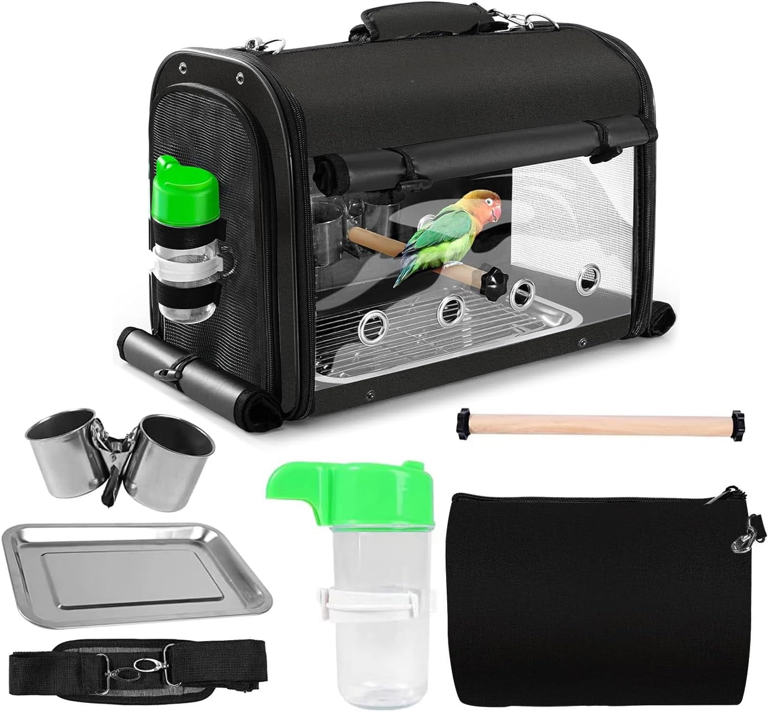 - 【FEEDING & PERCHING】There are removable bowls, a water bottle and two perches come with the bird carrier. It provides a comprehensive care and comfortable environment for birds.