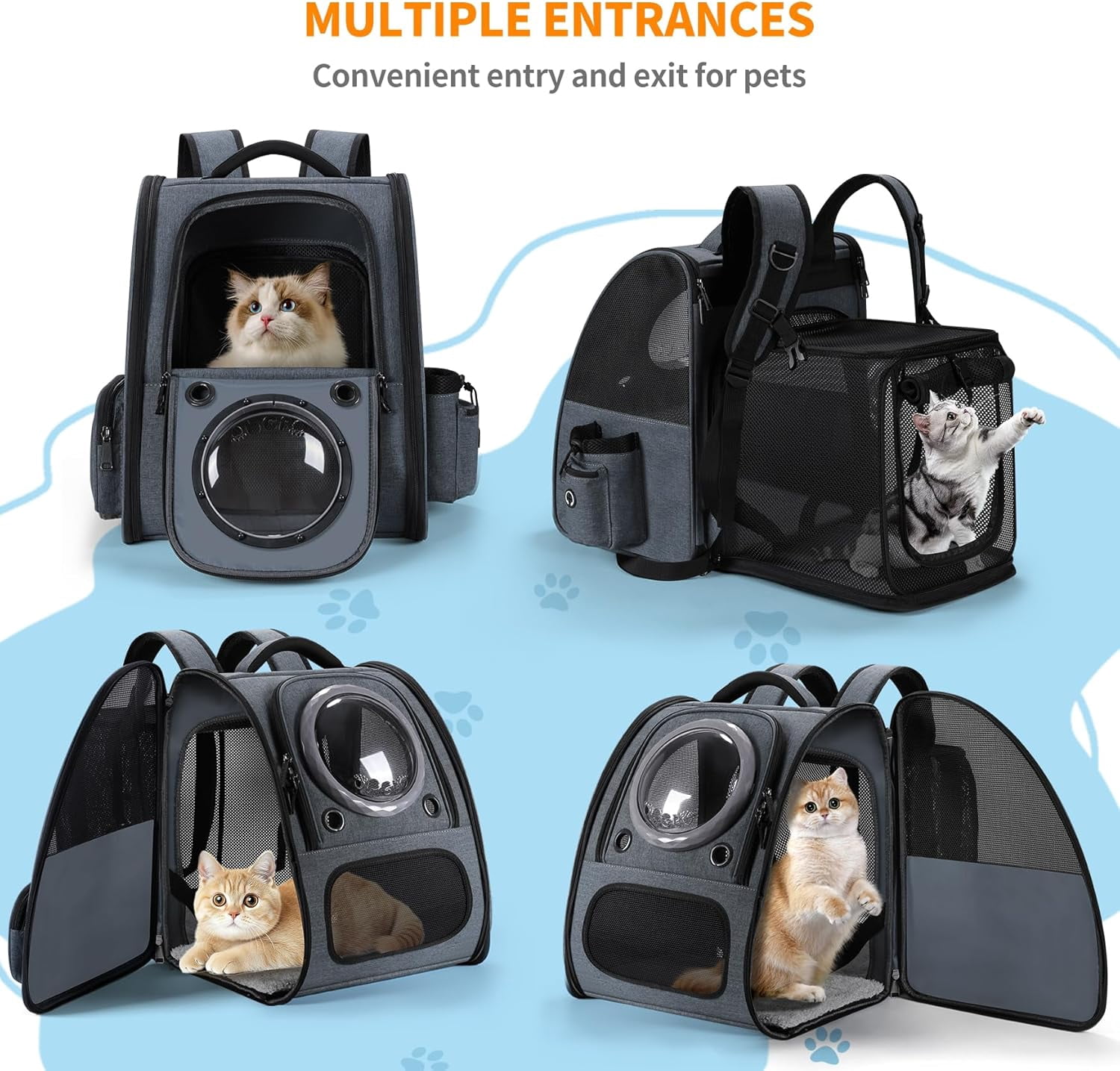DURABLE CONSTRUCTION: Made with high-quality gray fabric and sturdy mesh materials, designed for lasting performance and regular use,Strong bubble soft backpack,durable fabric and sturdy mesh in case pets claw scratch , large stroage and roomy space and for pets, suitable for small to medium-sized cats and dogs