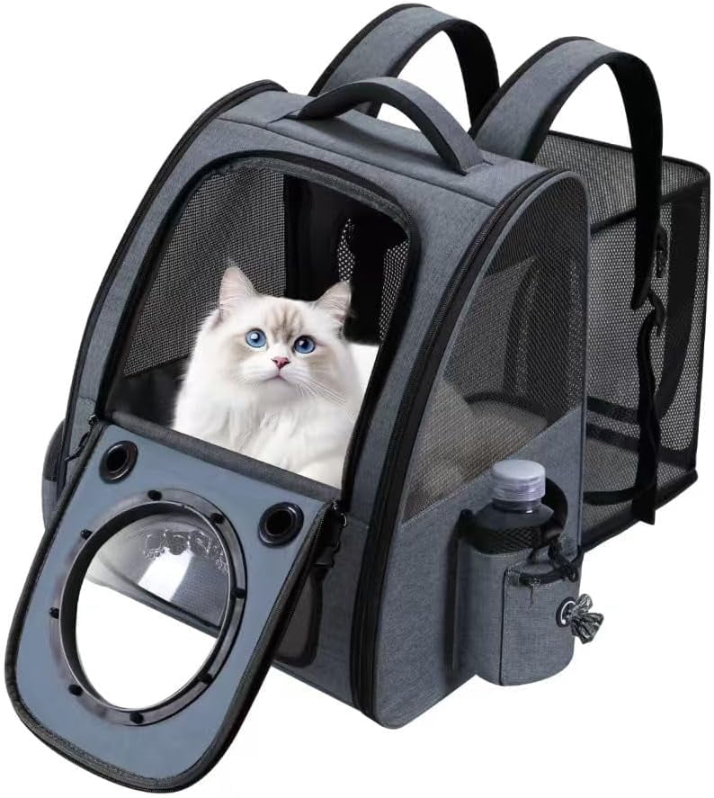 Bubble Cat Backpack Carrier, Expandable Cat Carrier Backpack,Breathable Pet Backpack for Medium Cat,Kitten and Small Puppy, Large Space,Portable Bags Foldable Dog Backpack for Traveling,Hiking(Grey)