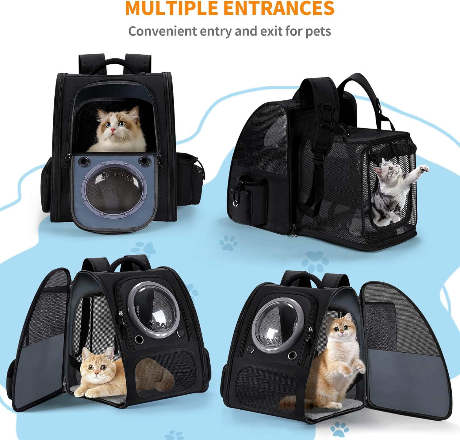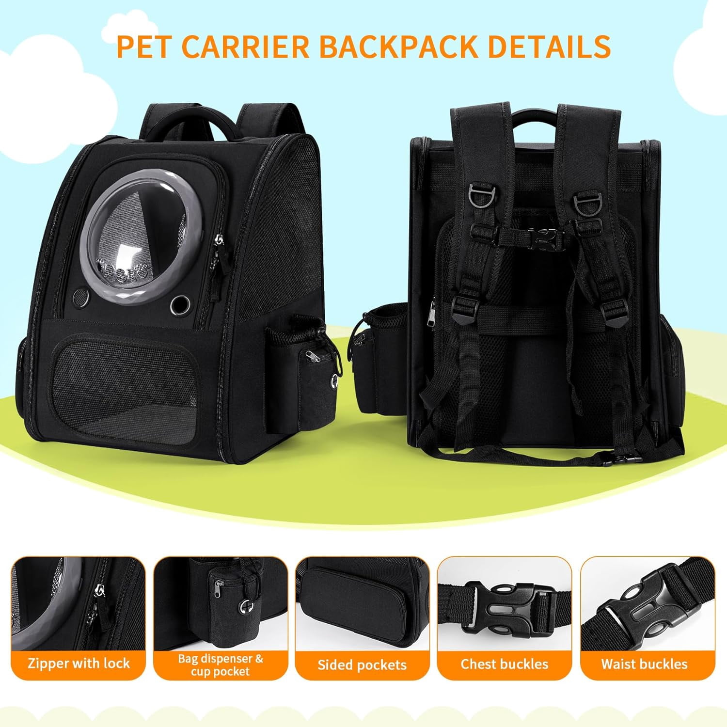 SPACE CAPSULE DESIGN: Features a extension cat backpack carrier strong and roomy soft backpack , durable fabric and strudy mesh with transparent bubble window that allows pets to observe their surroundings while providing a secure, enclosed environment for travel