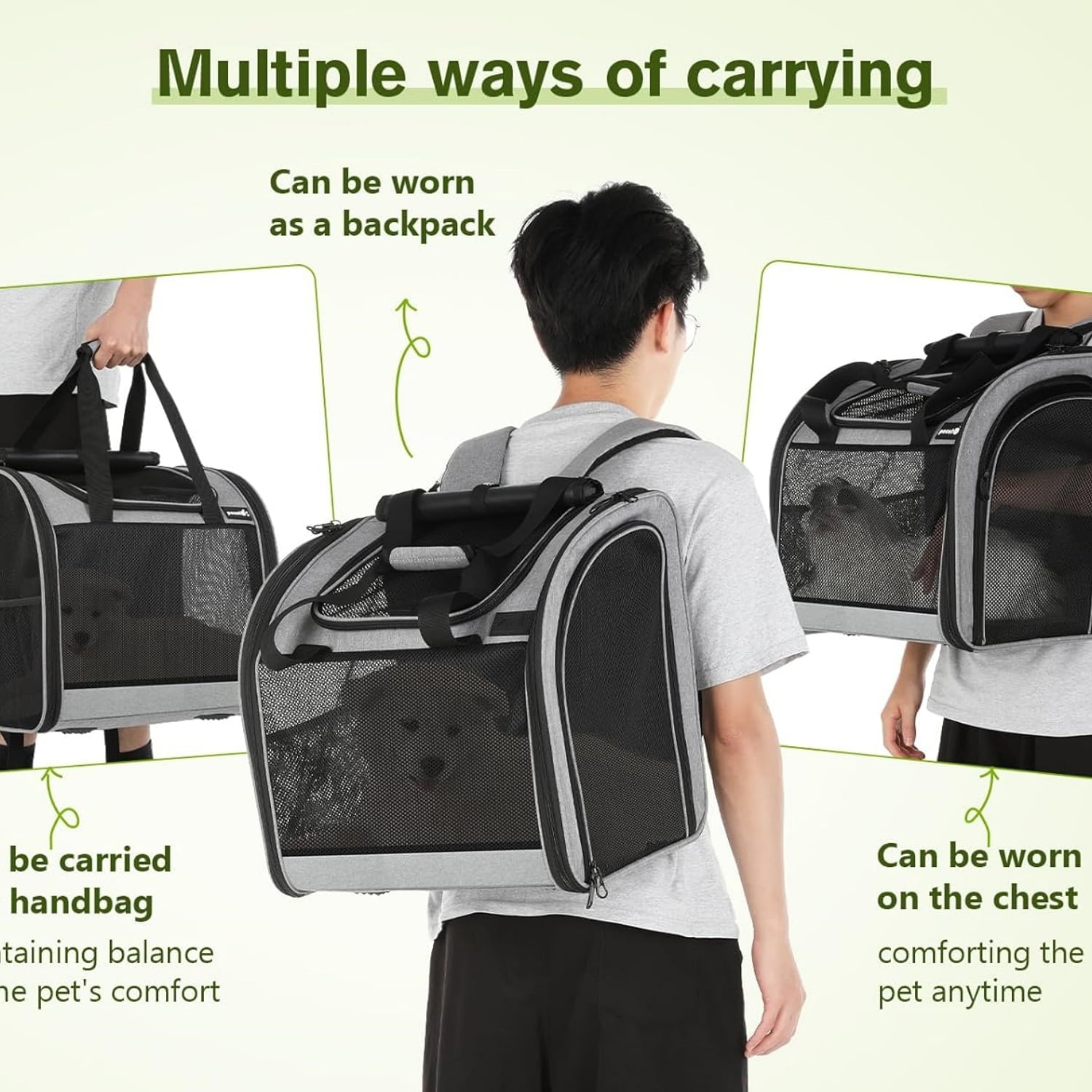 - 【 Breathable & Durable 】: Our dog backpack has an all-around breathable design, which not only allows your pet to enjoy fresh air, but also allows your pet to see outside through the mesh, maximizing your pet’s comfort. The mesh fabric we use is made of nylon material, which is more durable than rubber mesh and not easily scratched by pets.