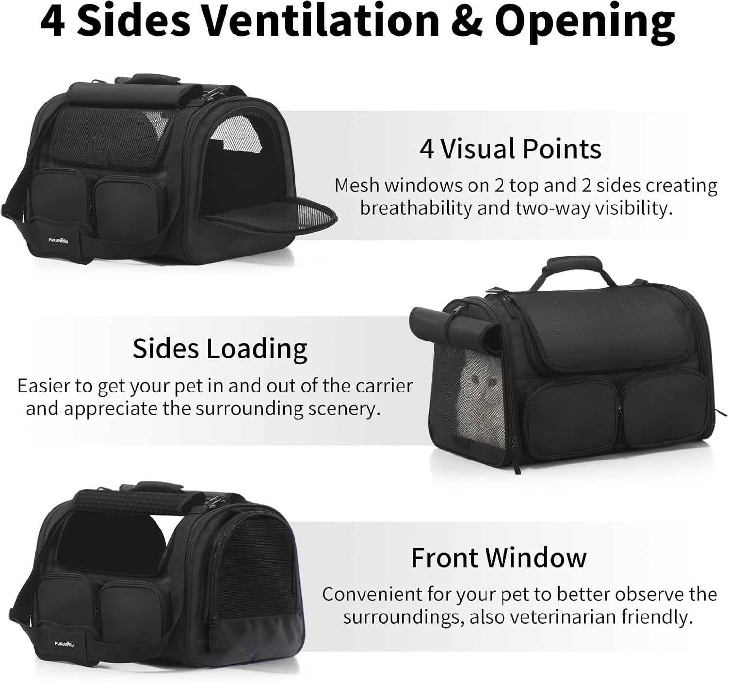 Easy Access & Ventilated – Updated to 4 entry doors, mesh windows on 2 top and 2 sides creating breathability and two-way visibility. All enters in this cat travel bag have zippers for easy pet loading with more comfortable, also veterinarian friendly.