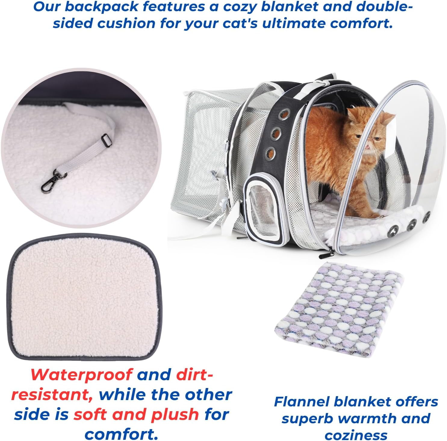 - Panoramic Bubble Window: Soft yet durable cat carrier backpack with a crystal-clear bubble window lets curious cats/dogs safely observe surroundings; Ideal for stress-free vet trips or airplane travel