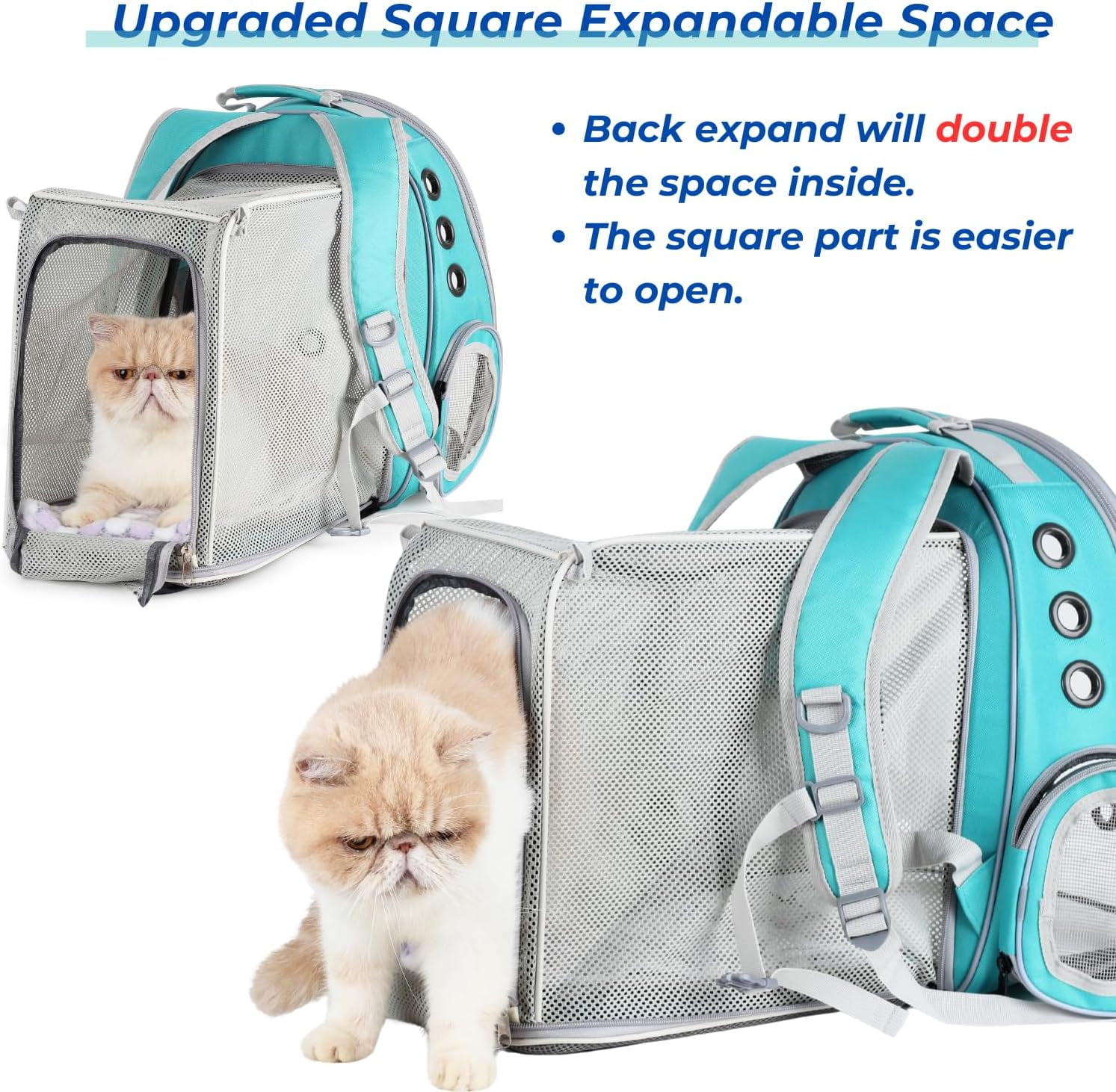 Cat Carrier Backpack, Bubble Expandable Backpack Carrier, Pets and Small Dogs,Airline-Approved, Designed for Travel, Hiking, Walking & Outdoor Use (Square Back Expandable-Black)