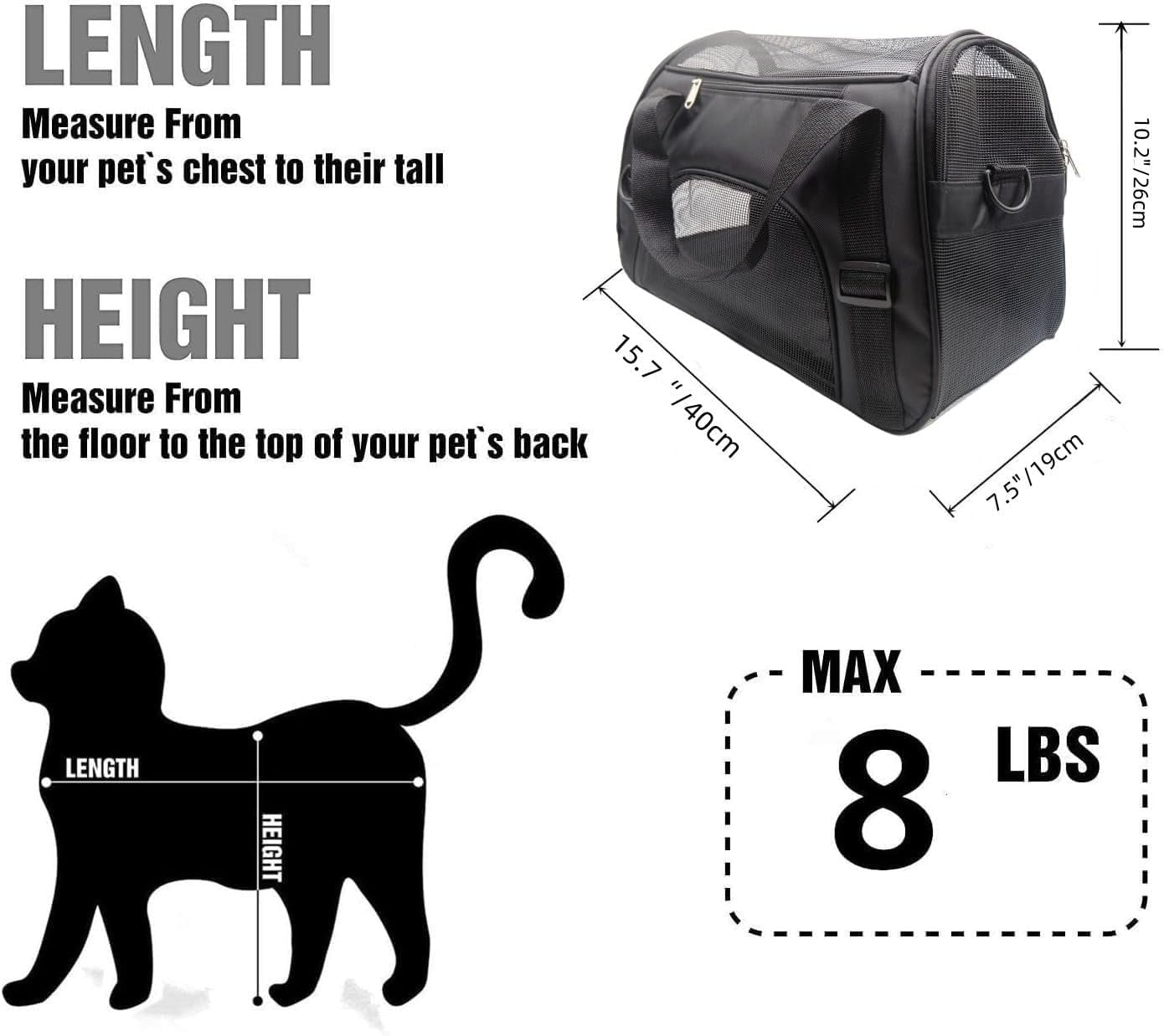 - [1.Size]:15.7″ L x 7.5″ W x 10.2″ H Inch; 40 L x 19 W x 26 H CM;Perfect for small cats,puppy and small cat,fit perfect for pet lighter than 8lb; ideal for travelling, camping or around the house to provide your pet with a luxurious place to rest.