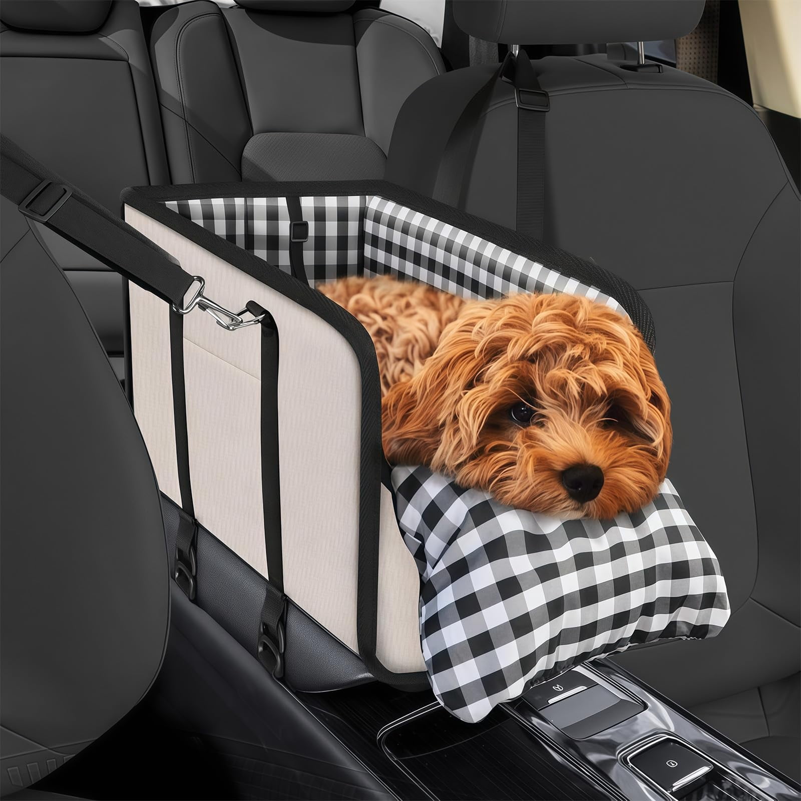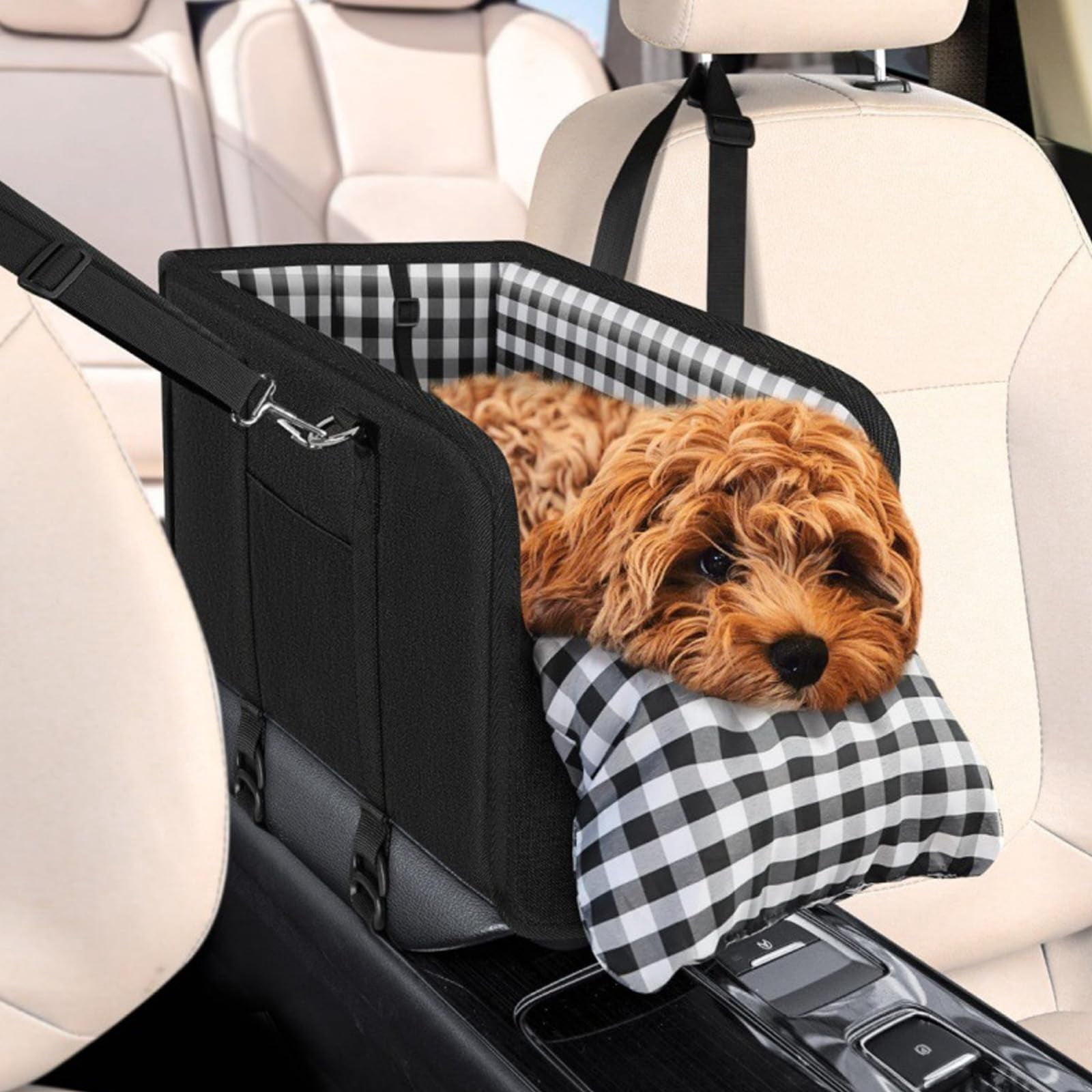 Center Console Dog Car Seat for Small Dogs up to 11lbs, Portable Booster Seat with Armrest and Headrest, Pet Carrier Bag for Travel