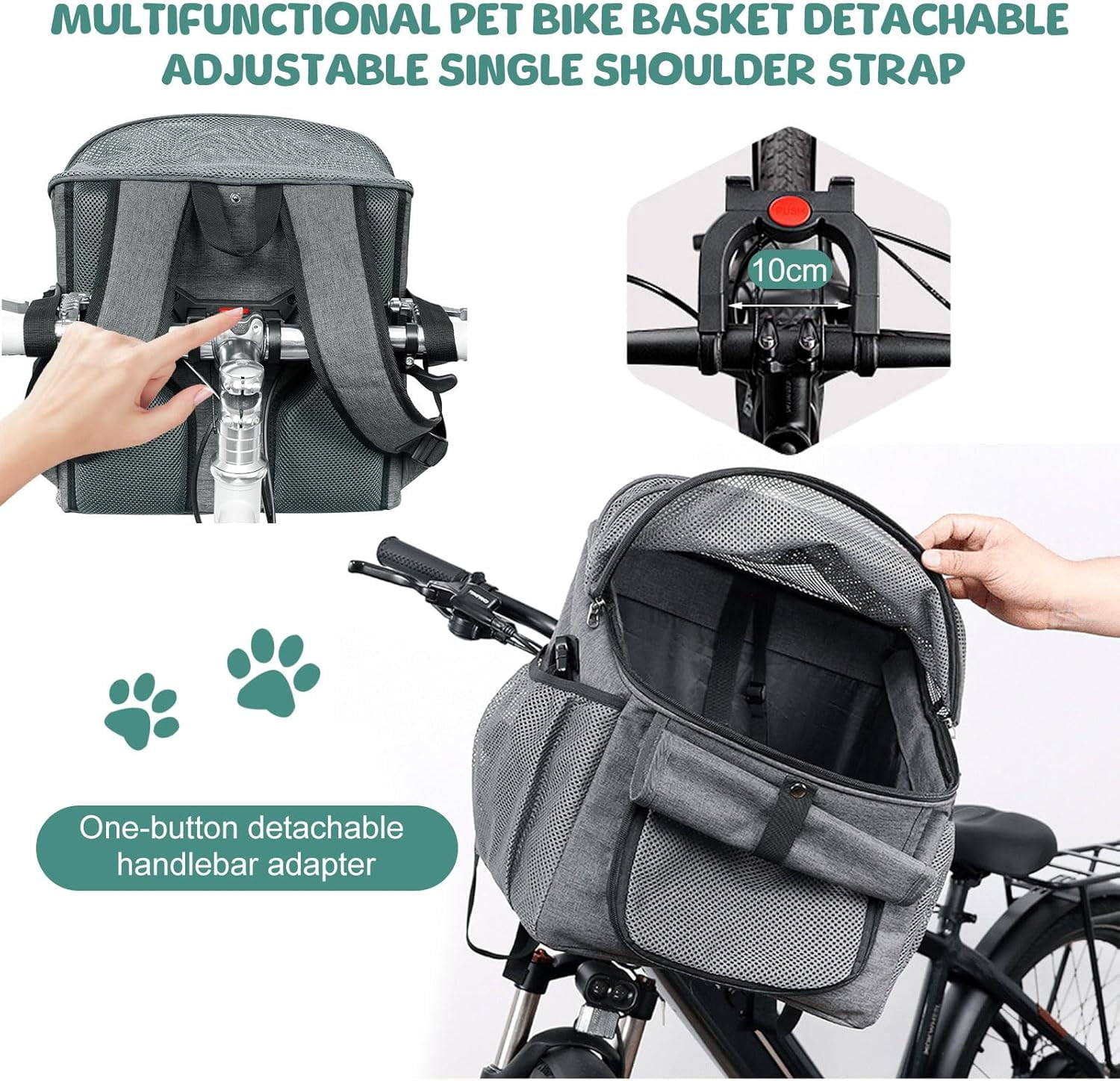 - FOLDABLE AND MULTI-PURPOSE: The dog seat for bike easily folds into one unit for storage and portability.This multifunctional bicycle basket can double as a dog bike basket, pet backpack, pet bag and dog harness to meet your different needs.Perfect for traveling, camping, vet appointments or a walk in the park with your pet to make your trip easier.