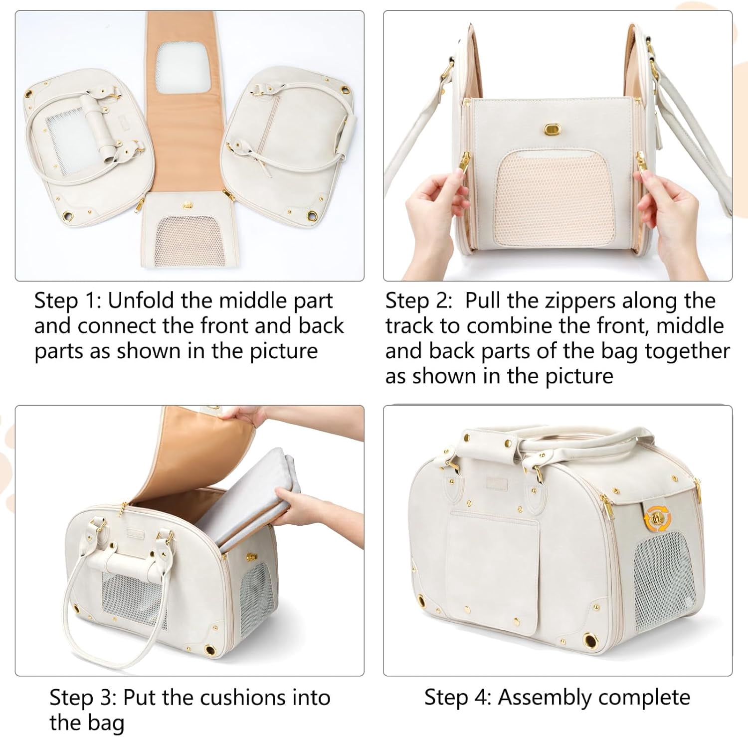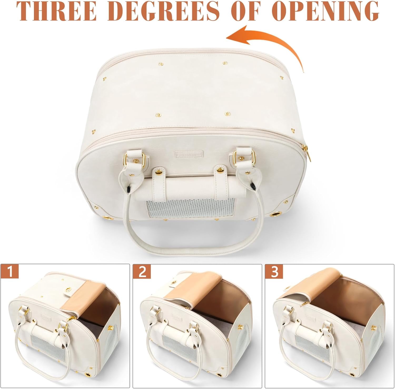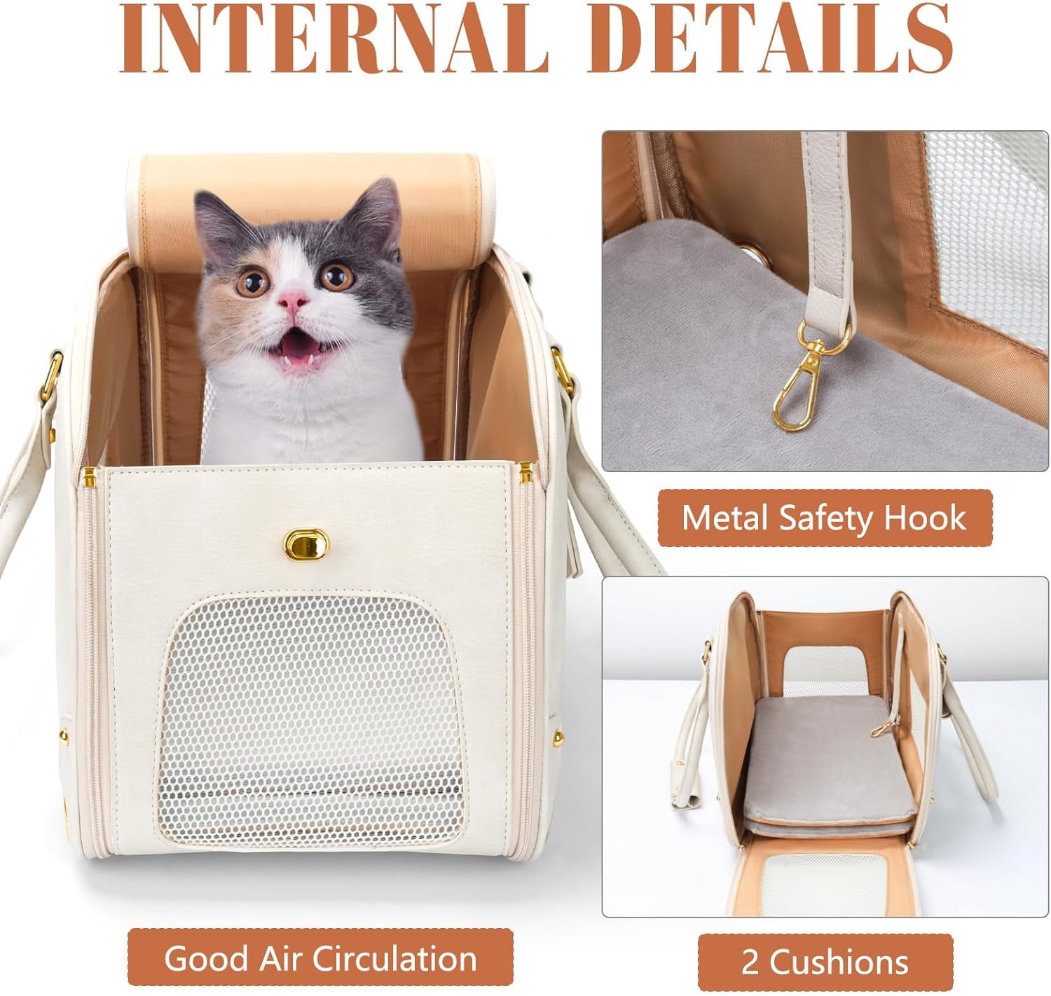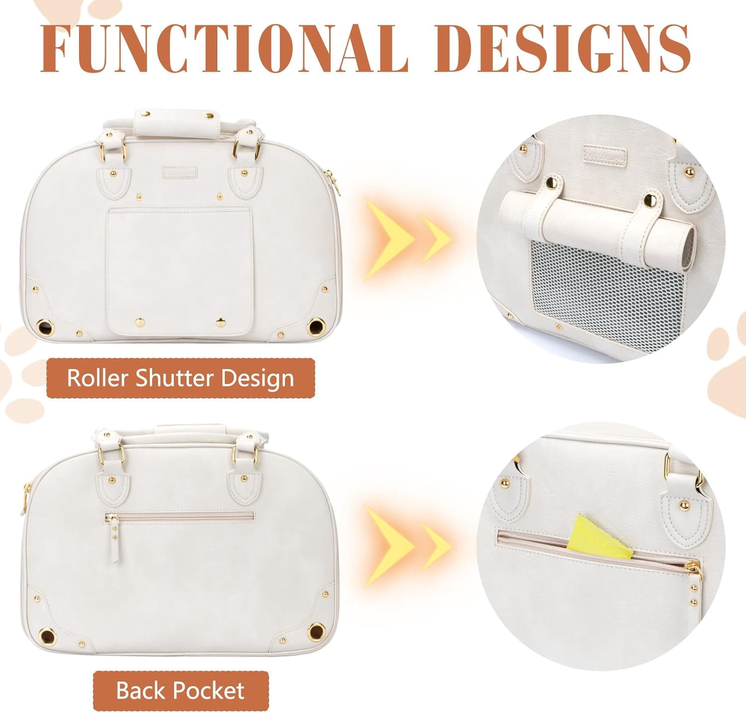 Dog Carrier Purse, Pet Carrier, Waterproof Premium Leather Pet Travel Portable Bag for Cat and Small Dog Home & Outdoor Medium Beige
