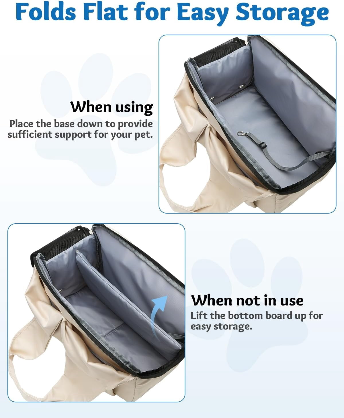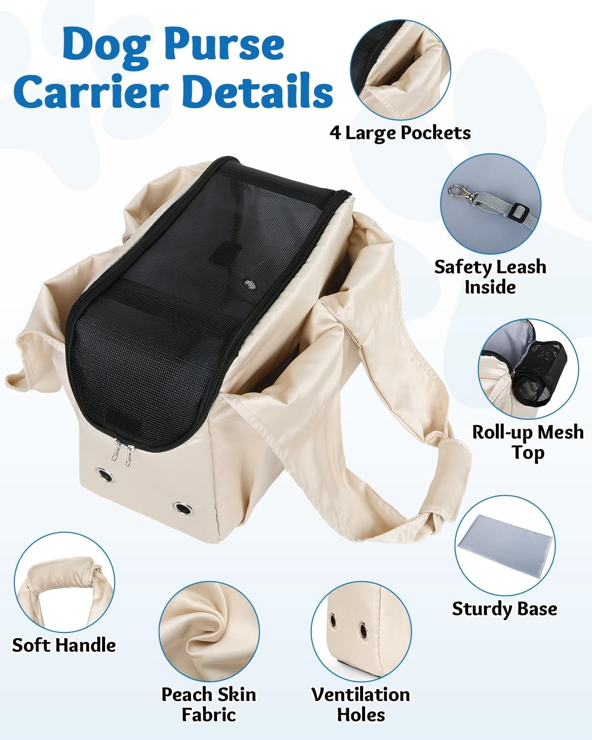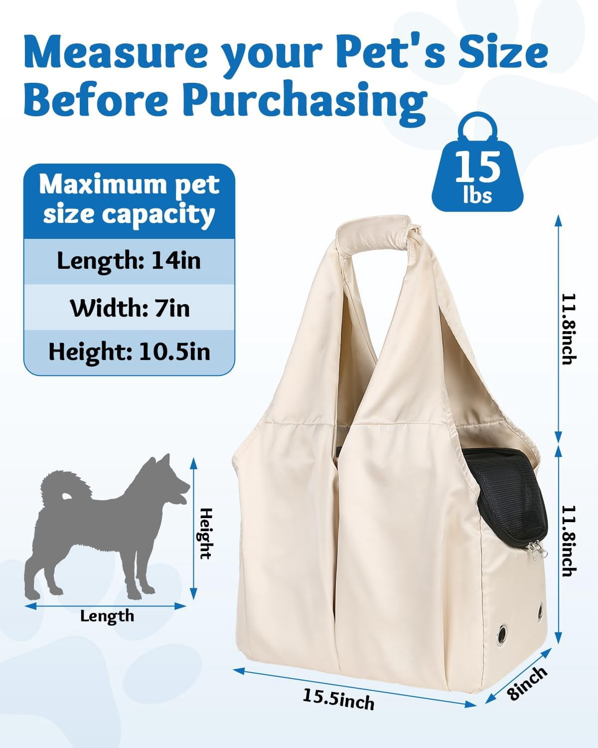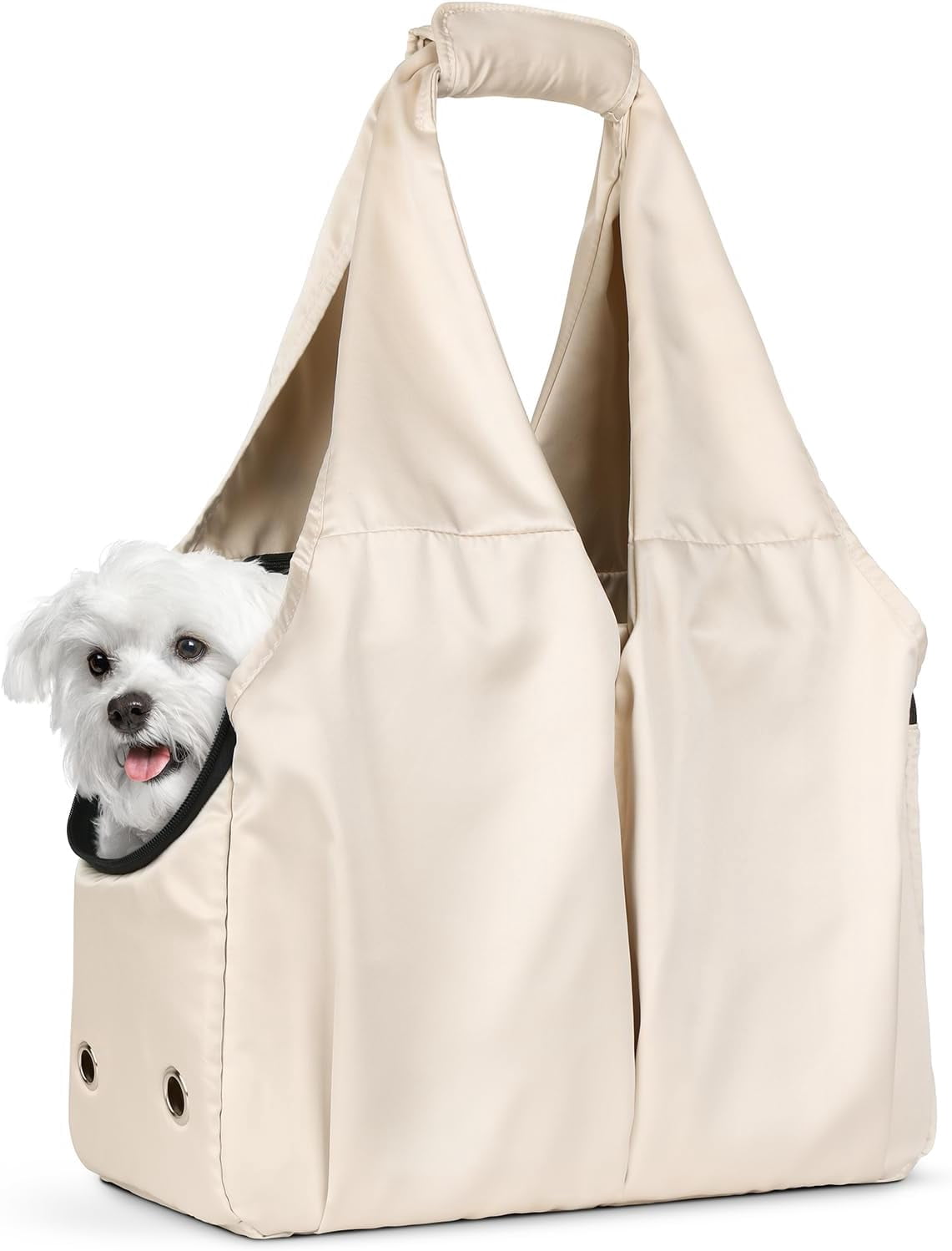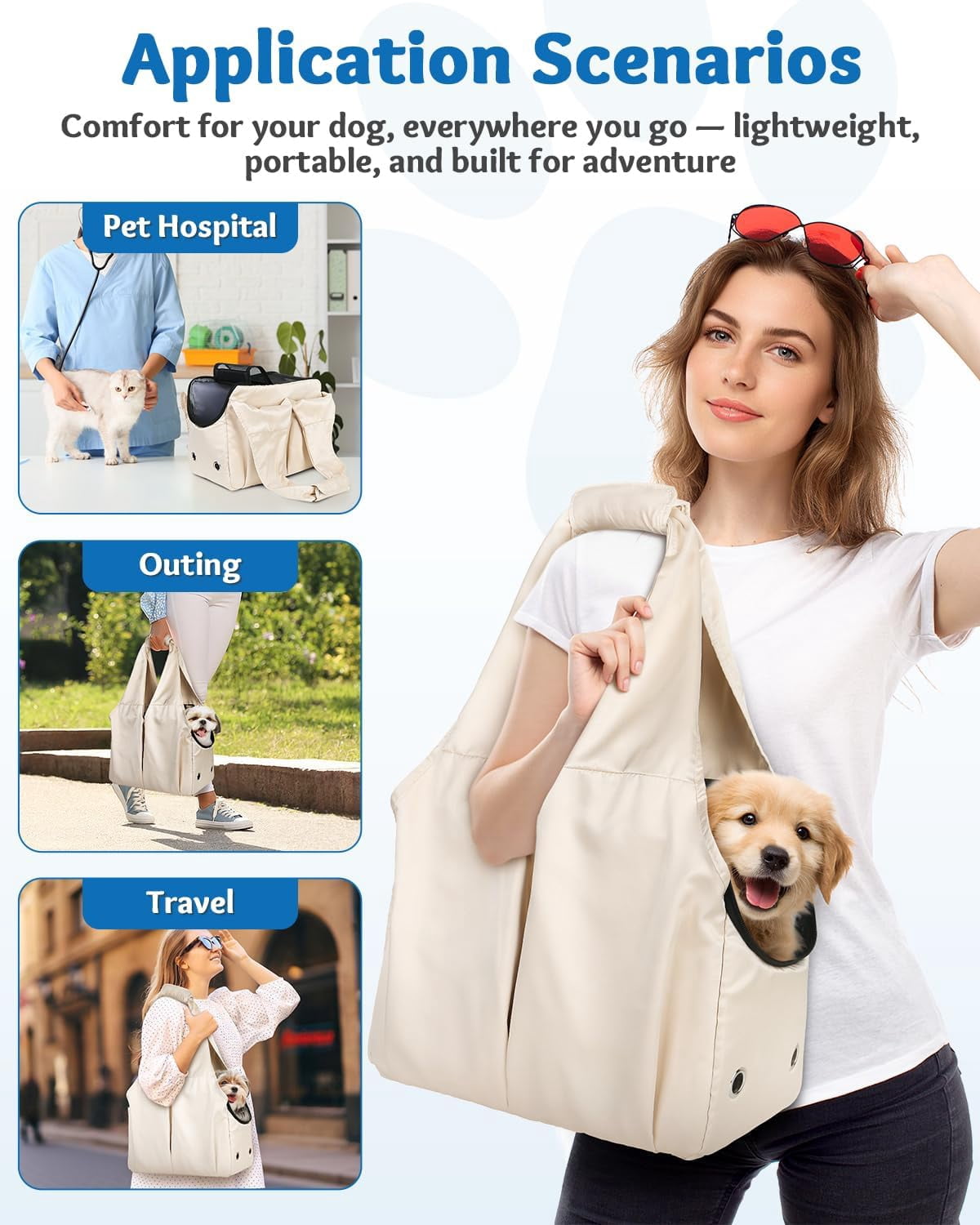 Dog Carrier Sling for Small Dogs & Cats Up to 15 lbs, Portable Soft Sided Travel Pet Tote with 4 Large Pockets, Collapsible Puppy Bag for Outings & Travel, Beige