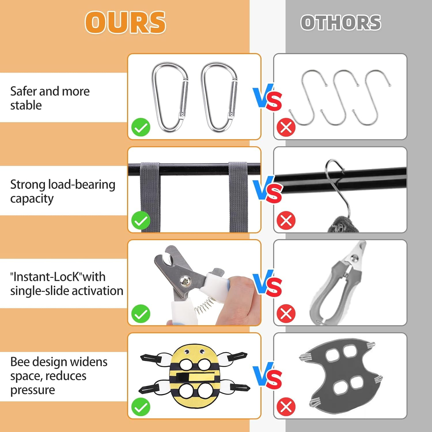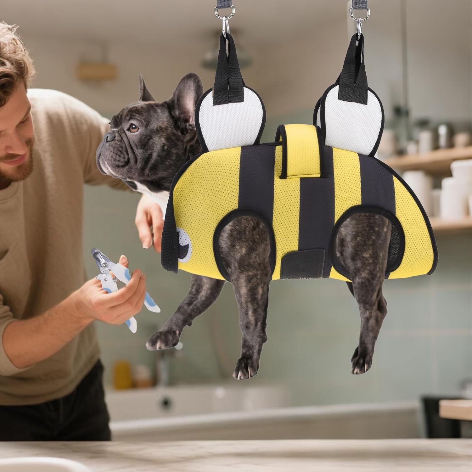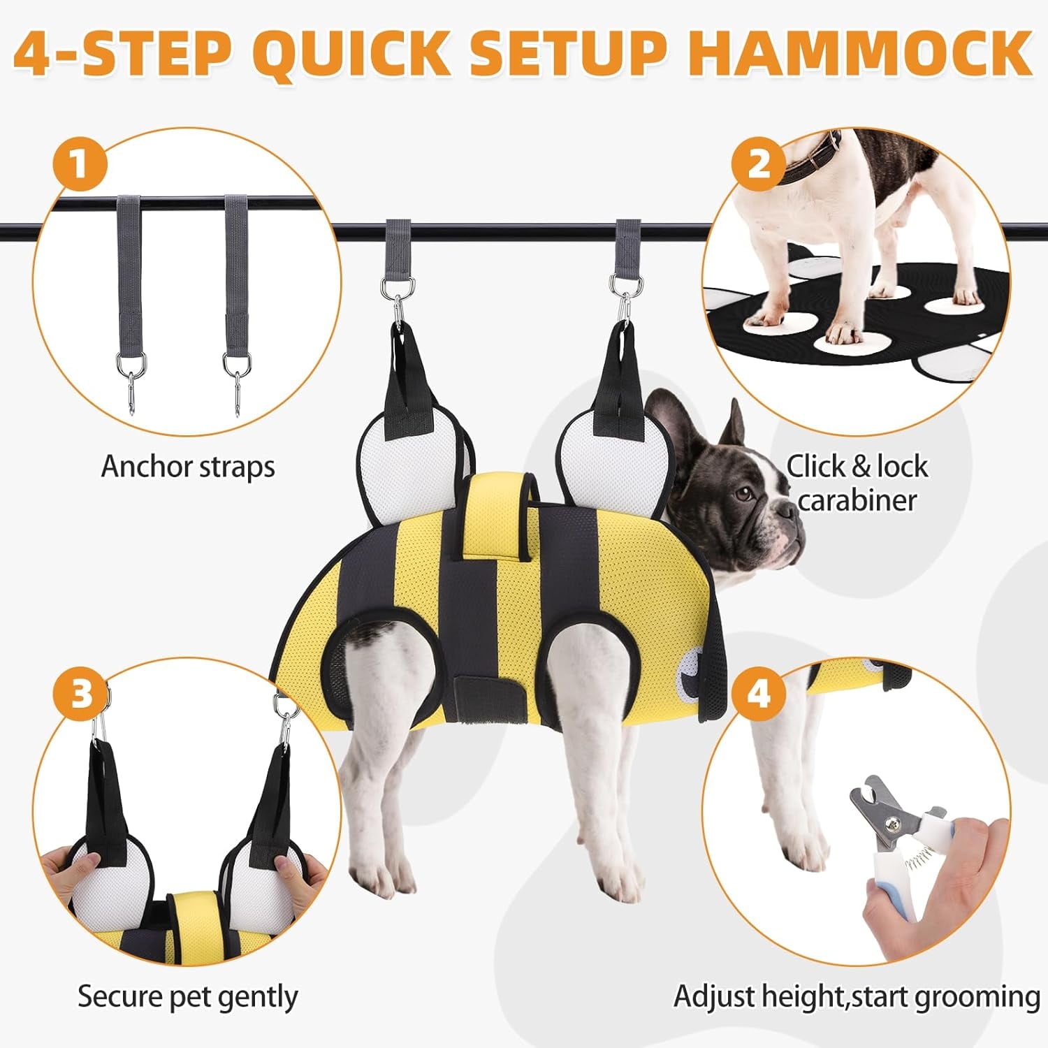 Enhanced Security — The pet grooming hammock comes with adjustable straps that securely attach to the back of your pet, ensuring a perfect fit. The heavy-duty clamps provide excellent load-bearing capacity and are more durable, stronger, and safer than standard S-shaped hooks. Additionally, you can rest assured that there is no risk of your pet escaping or the straps breaking, eliminating any potential danger.