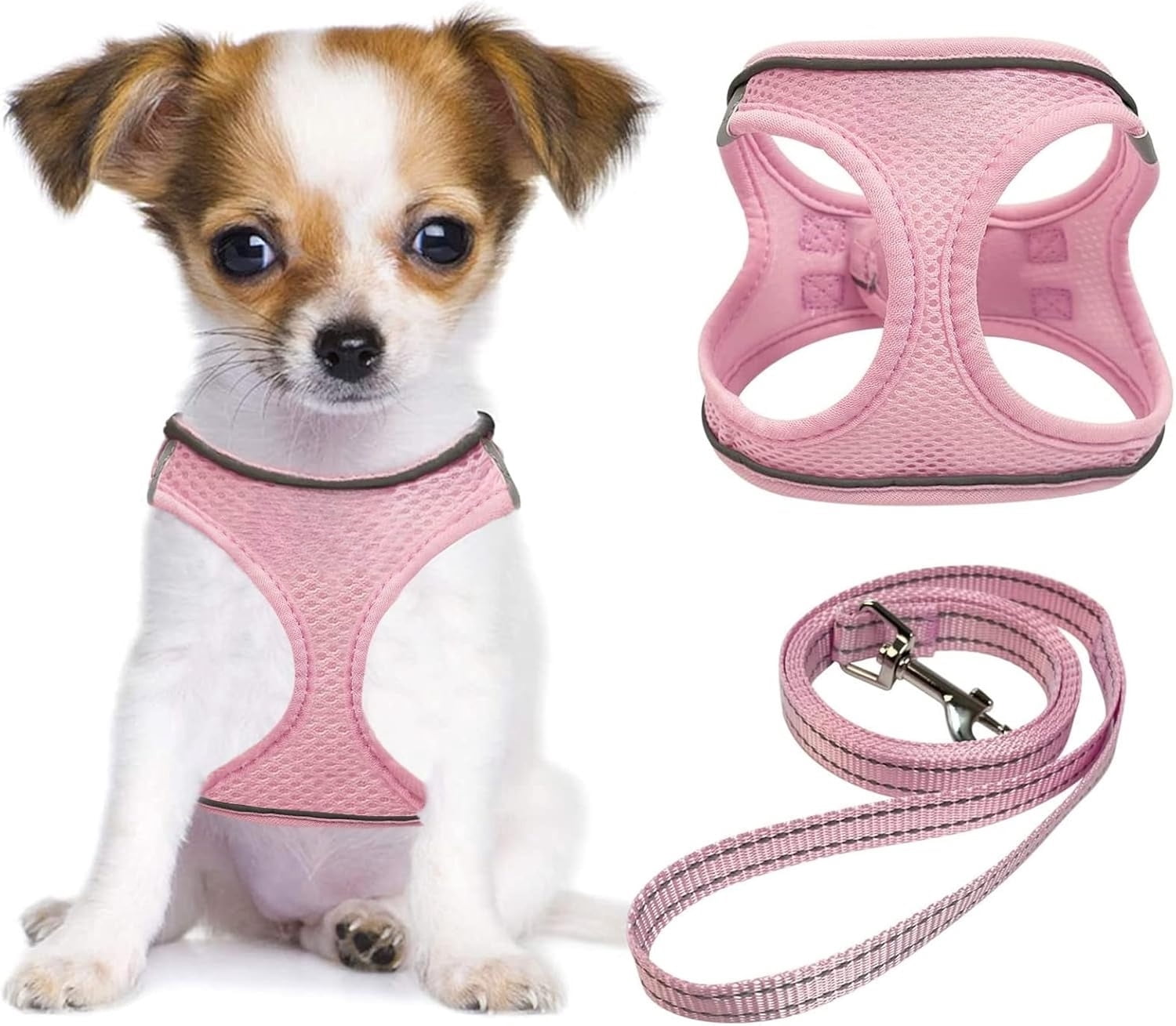 Dog Harness & Leash Set, No-Pull Soft Mesh Adjustable Pet Vest for Small, Medium & Large Dogs and Cats, Reflective, Pink, Small (1 Pack)