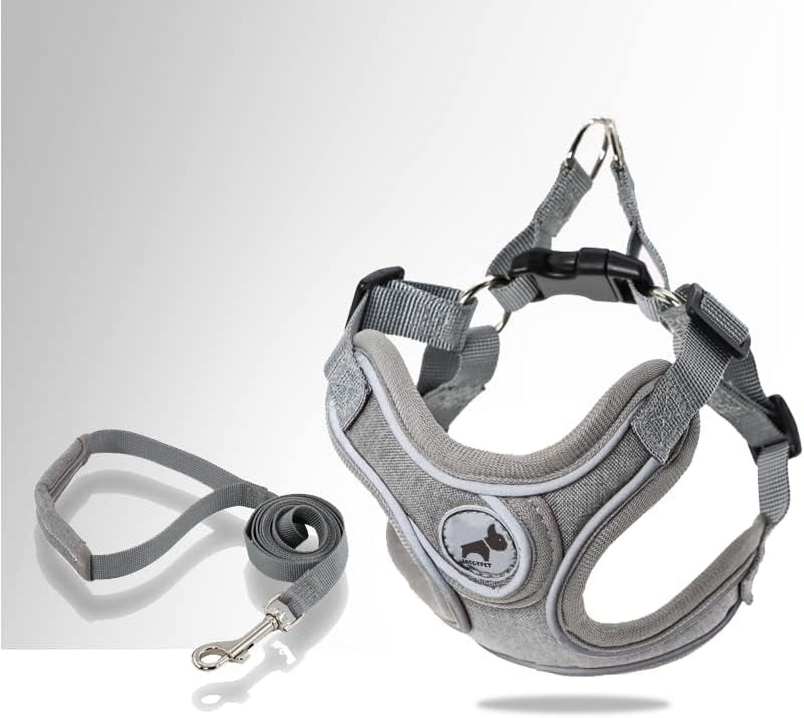 [No pull & choke-free] The no pull dog harnesses & leashes set has 2 sturdy metal D-ring leash attachments, easy links to traction rope hooks, not easy to swing, easy walk dog harness, prevent suffocation and pull. Padded design reduces tugging and pulling on your dogs and cats neck.does not strangle the chest, 360°around the pet’s chest, fit the whole body, disperse the force evenly to avoid damage to pets.