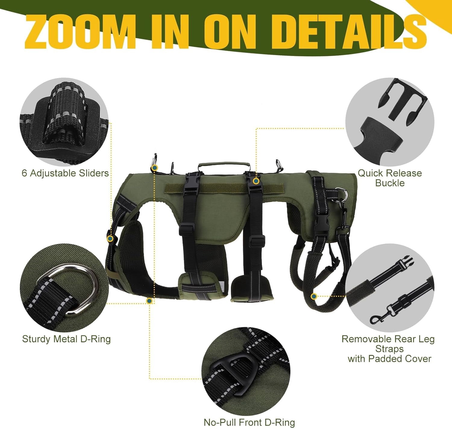 - Two lift handles on the back and rear for easy control to assist your dog in overcoming obstacles