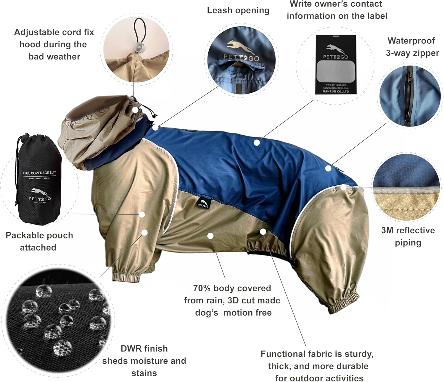 Harness-friendly design with a waterproof zipper opening for easy access to your dog’s harness or collar