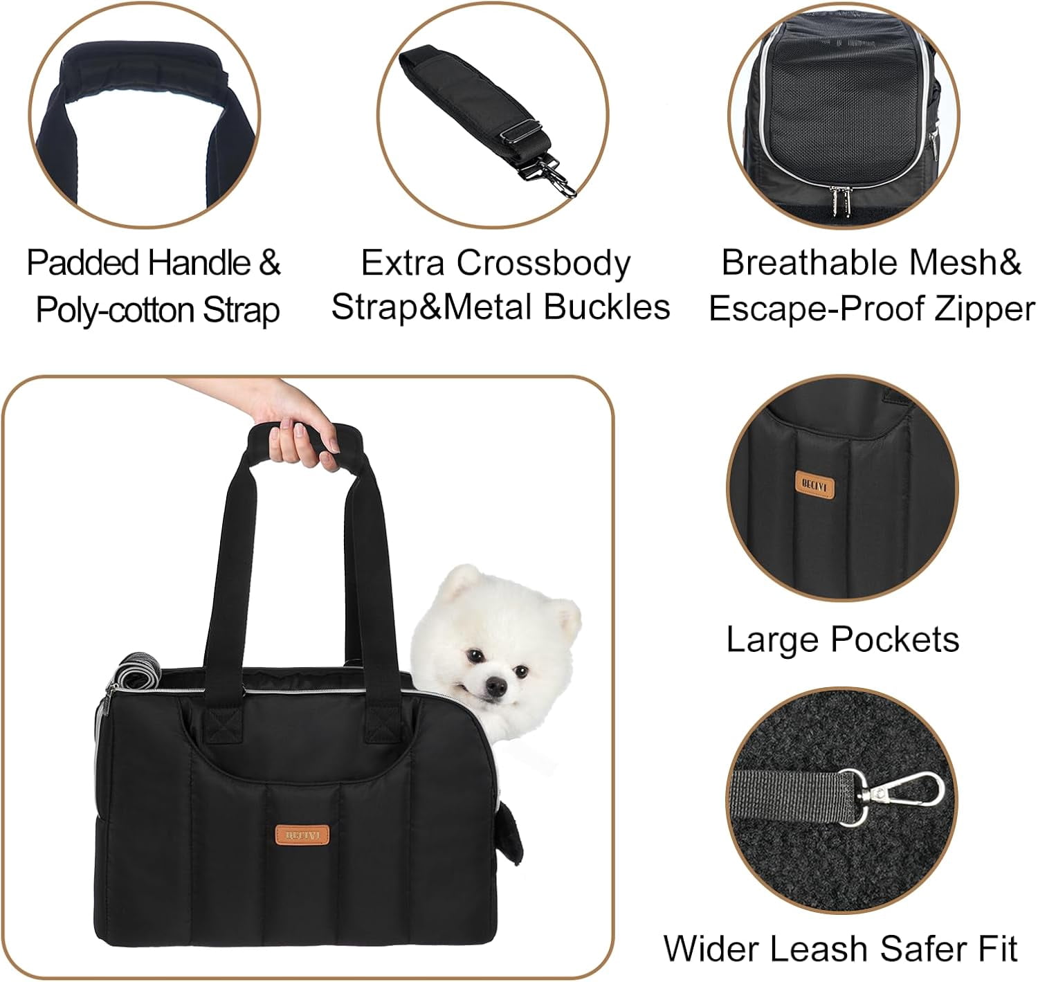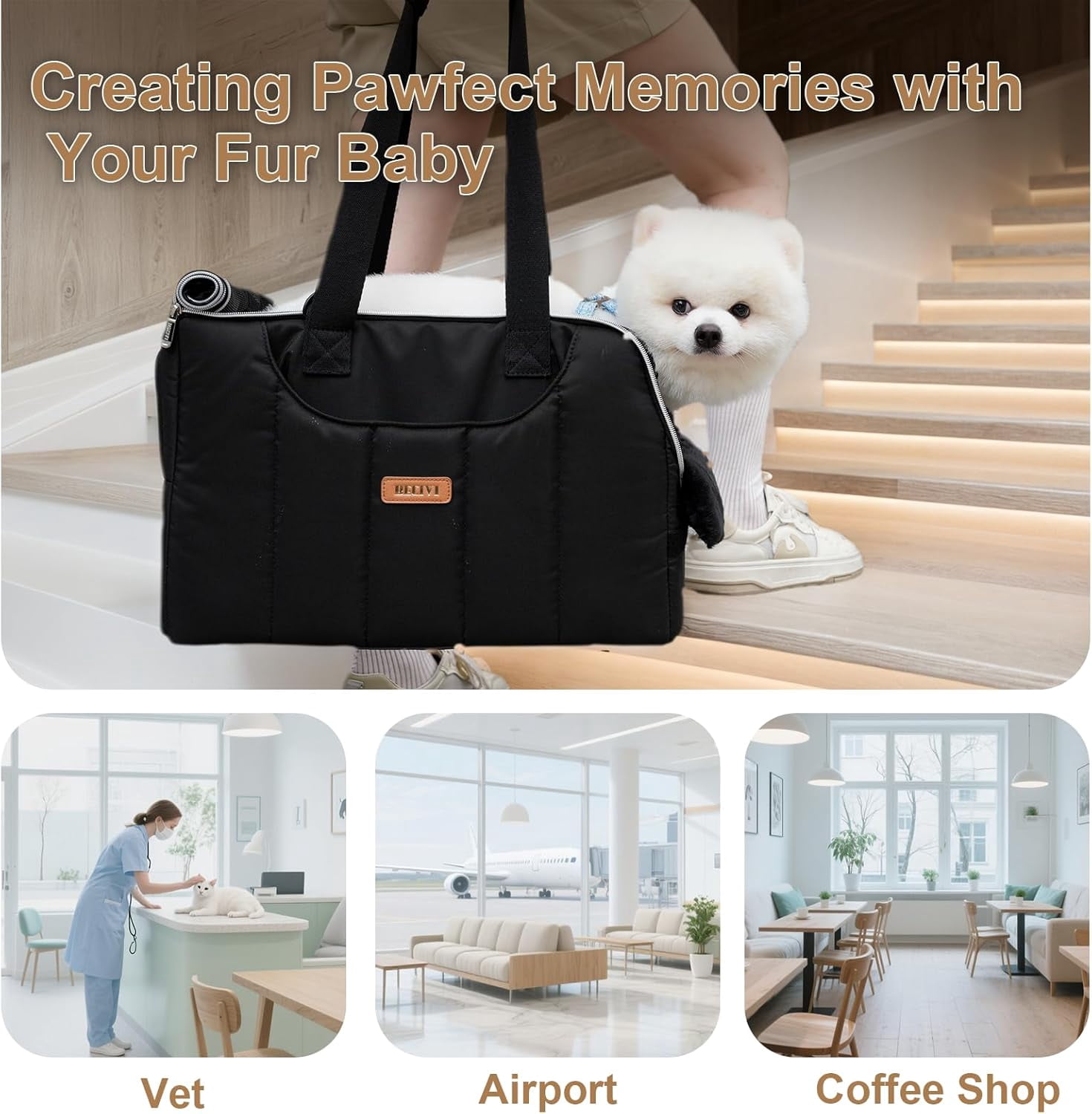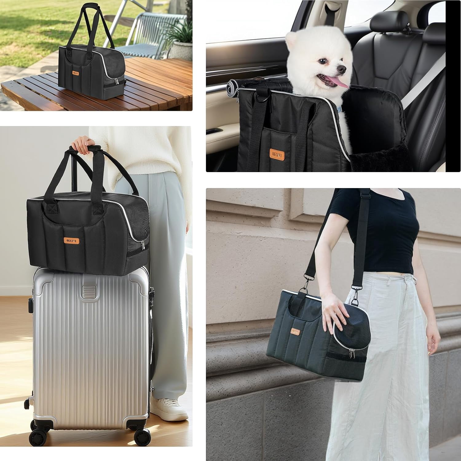 - FITS MOST AIRLINE & SECURE: The package contains a dog/cat purse bag, a front soft pillow, a hard base insert and a poly-cotton crossbody strap.The dog carrier for small dogs has a wider adjustable internal tether and escape-proof zippers keeping your fur baby safe.Soft sides design prevents cabin rejection (fits under 90% airline seats).
