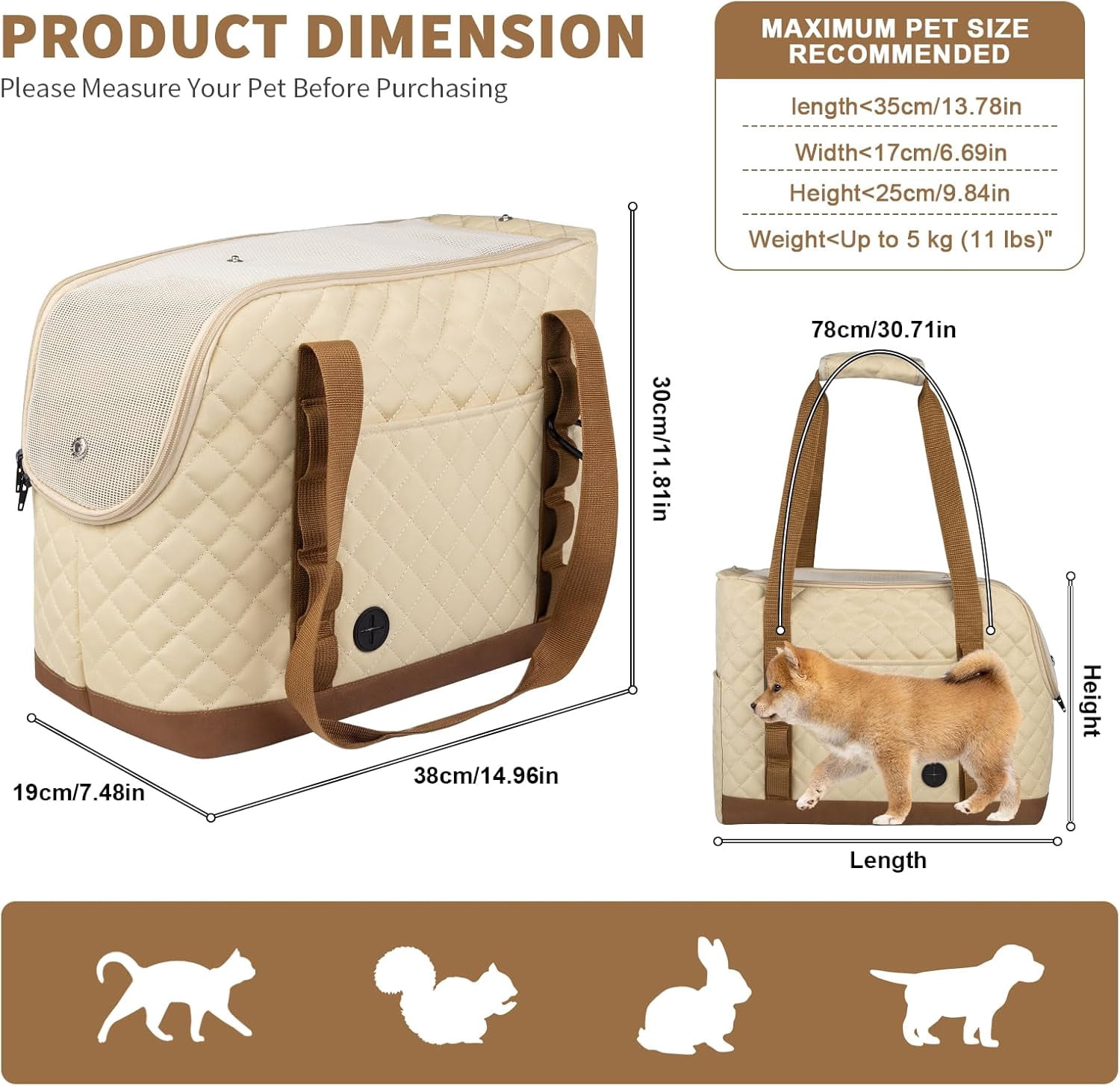 【Perfect for Small Dogs】This dog purse carrier measures 14.96“L x 7.48”W x 11.81″H and is specifically designed for small dogs weighing under 11 pounds. We recommend measuring your dog’s dimensions before purchase to ensure a perfect fit. This dog carrier bag is ideal for daily outings with small dogs such as Chihuahuas, Yorkshire Terriers, Maltese, Toy Poodles, Teacup dog and Pomeranians. It is also suitable for small pets such as cats and rabbits.