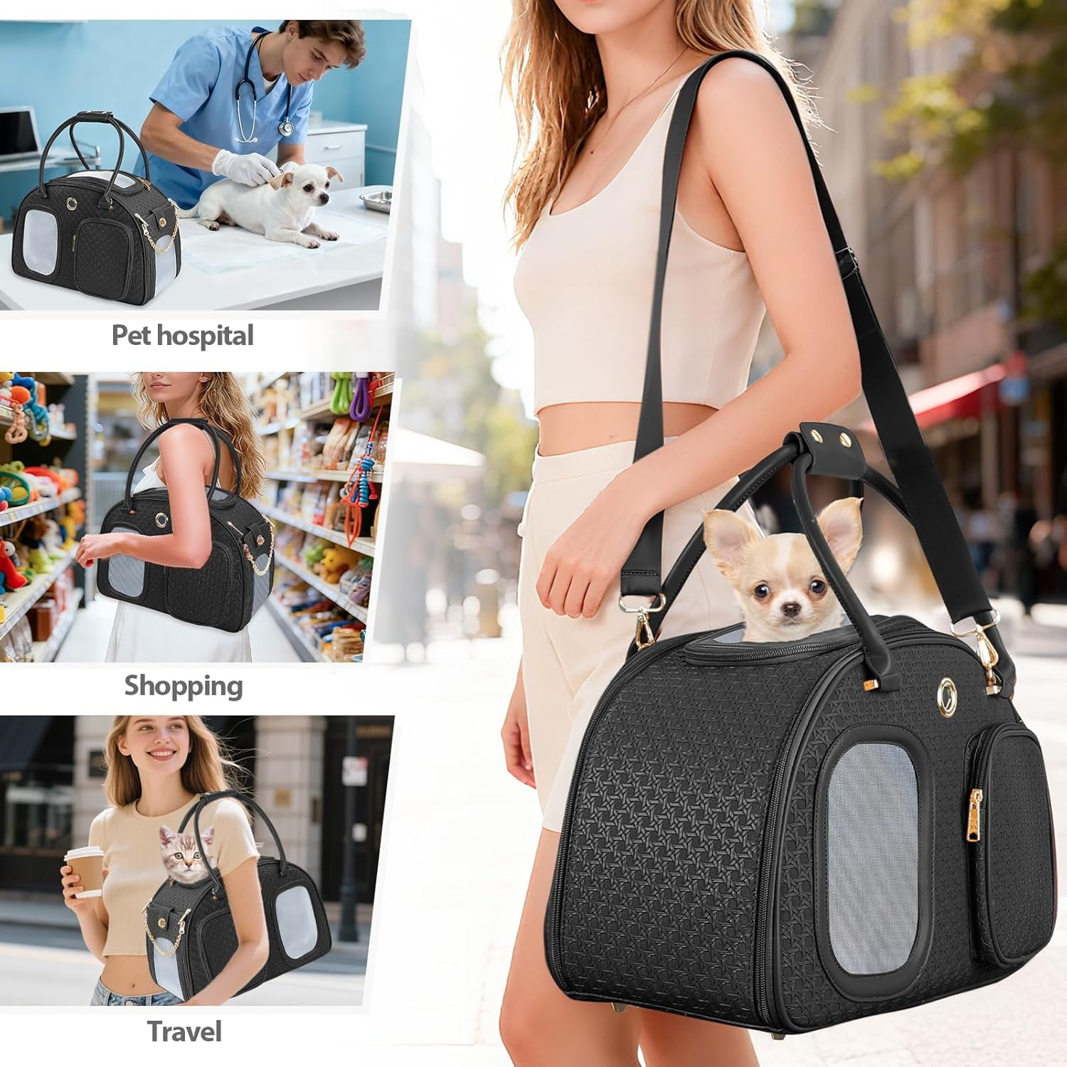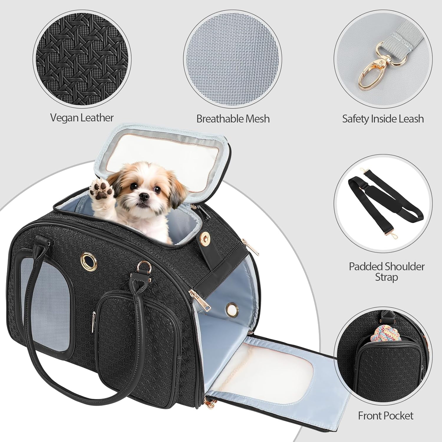 - Premium PU leather and gold hardware create a stylish pet tote handbag; Perfect for small dogs, cats, and rabbits under 9lbs; An ideal gift for pet moms who value fashion and function