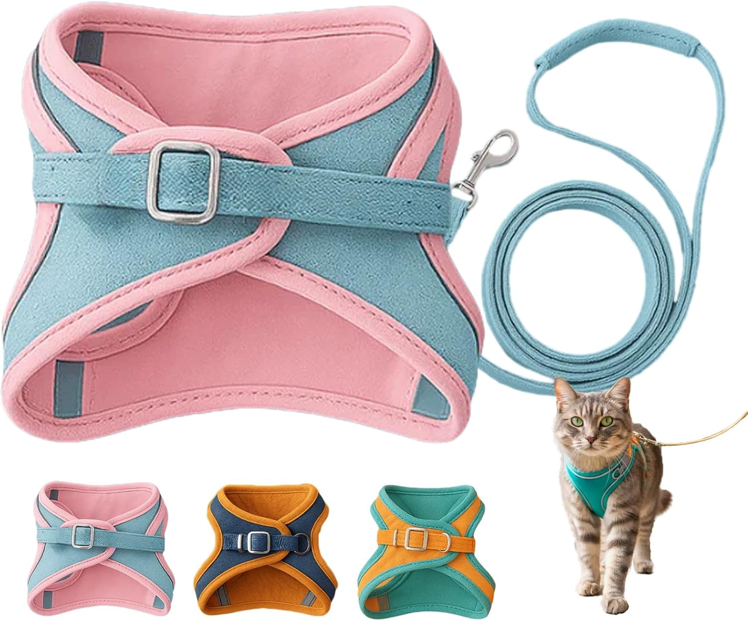 - 【Soft & Breathable Comfort】Crafted from lightweight suede with smooth edges, this escape-proof cat harness leash offers a soft, breathable feel that keeps your cat comfortable without irritation, allowing your pet to explore outdoors while staying cozy.