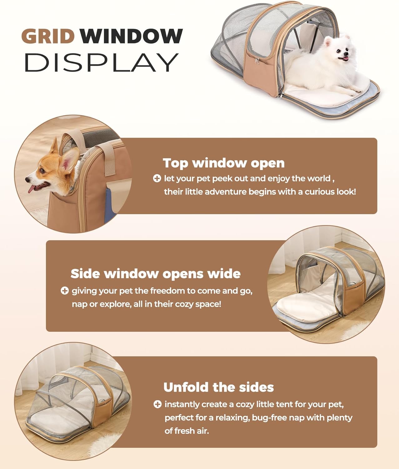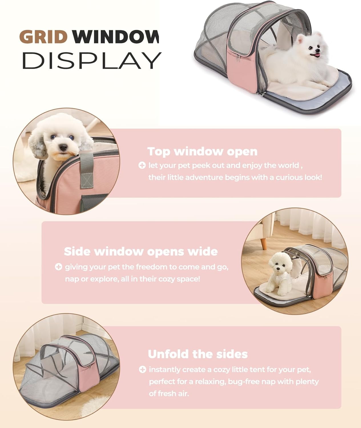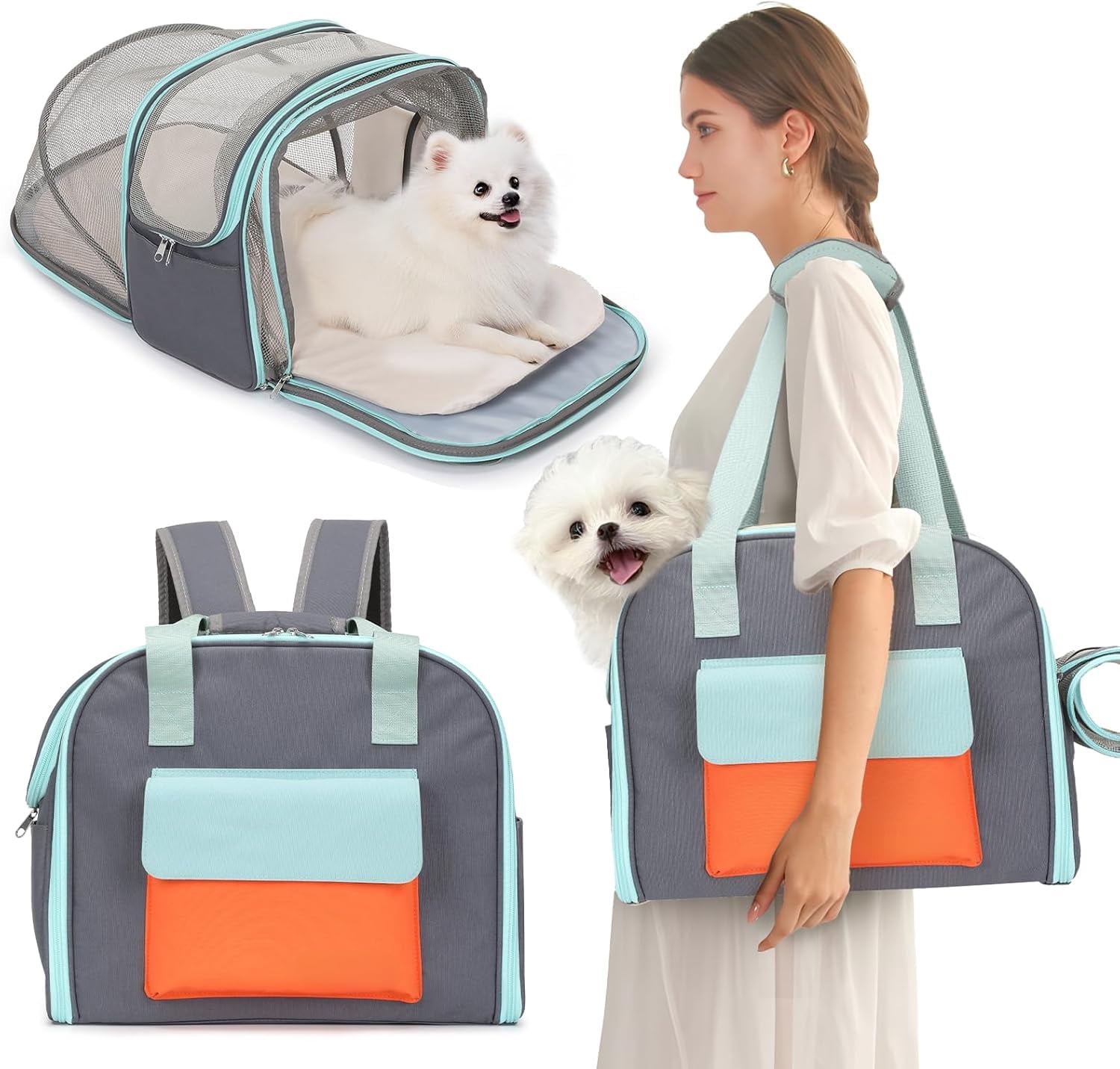 Multiple Carrying Options with Comfort: Functioning as a versatile expandable cat carrier backpack, shoulder bag, or tote, it adapts to your travel needs. Thick padded straps reduce pressure for your comfort during extended use, while the internal safety leash prevents your pet from escaping.