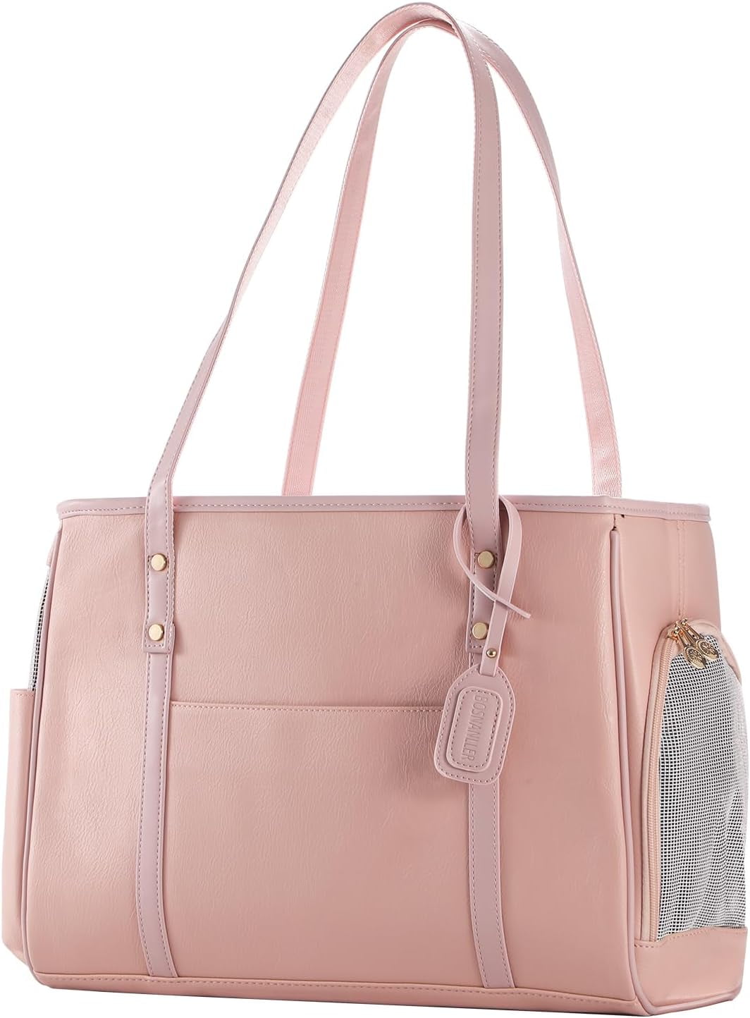Fashion Dog Carrier Purse, Premium Leather Cat Carrier Bag, Airline Approved Soft Sided Pet Travel Tote Bag with Pockets Pink