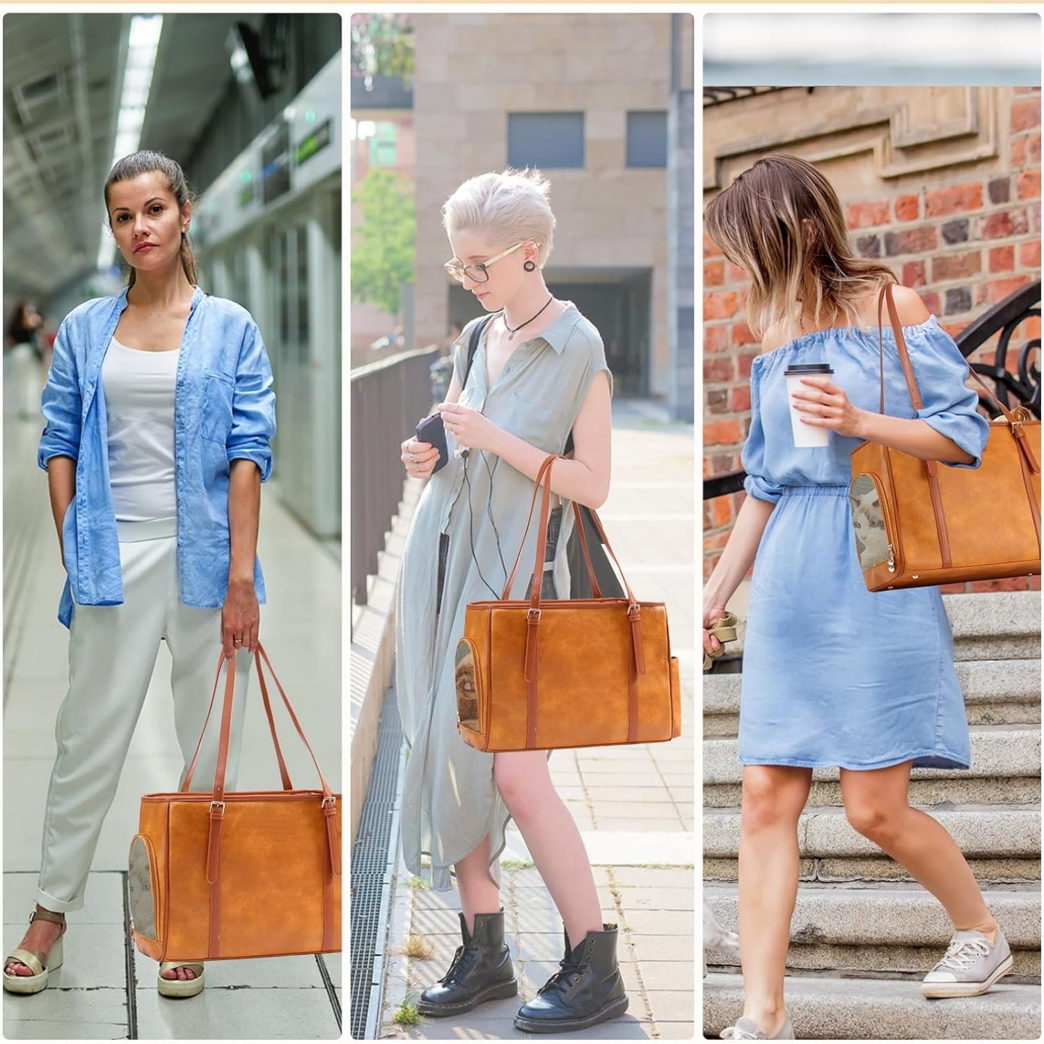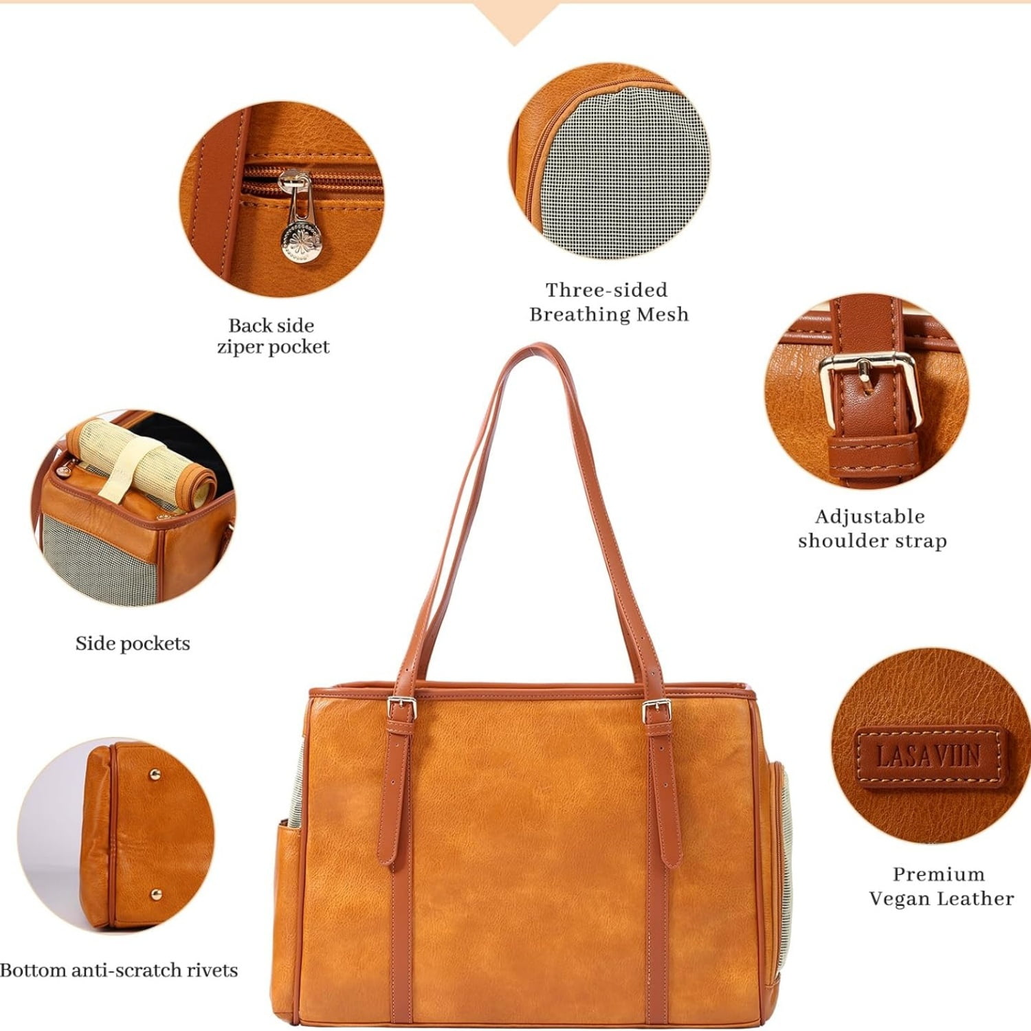 - 【Three Sides Breathable】Three sides breathable mesh ensures enough breathability and comfort for your small dog and cat. The top and sides can be opened so you can easily interact with your pet while traveling, and it fully complies with the airline’s three-side breathability requirement.【High Quality Material】Our soft side dog purse is made of high quality smooth vegan leather. No color fading, no deformation, breathable, lightweight, scrubbable and soft. The two pockets on the side and back can hold some travel essentials, such as snacks, cell phone, keys, wallet and so on. Very convenient.[Specification]Length 16 inches, width 7 inches, height 11.5 inches. Tip: Please make sure your small dog/cat/rabbit is the right size before purchasing, please be careful if your pet is too big or too heavy, it is recommended that pets under 10 pounds will be more comfortable.