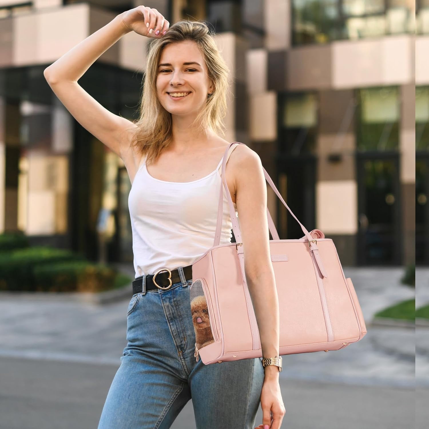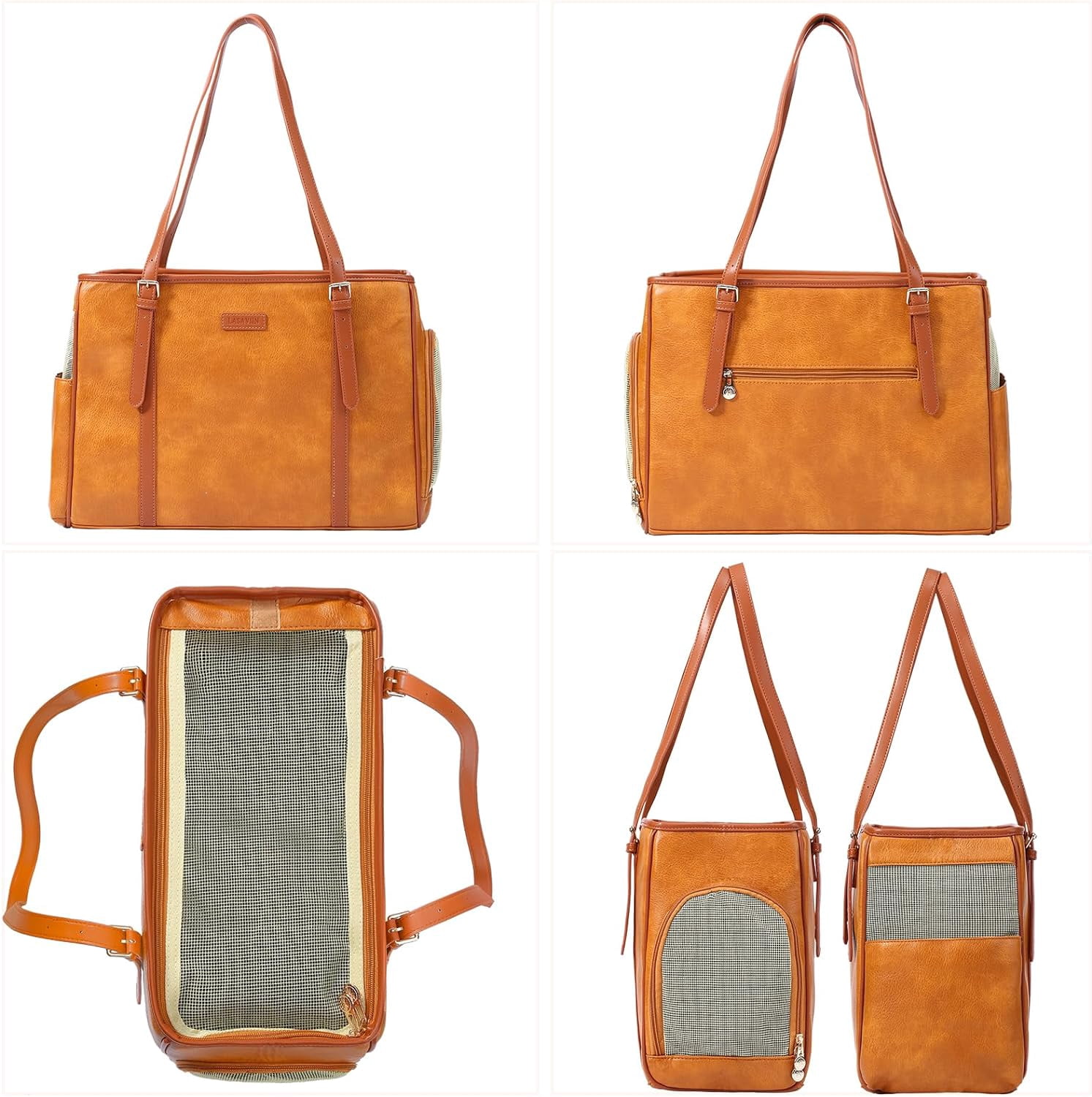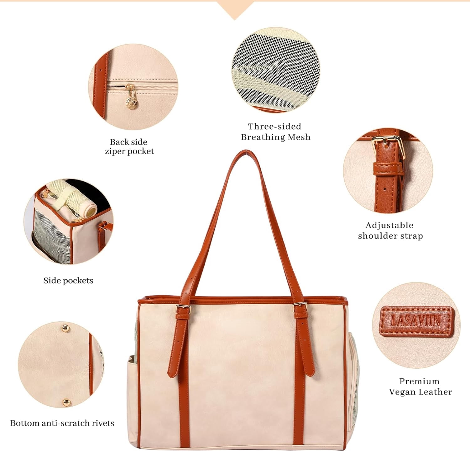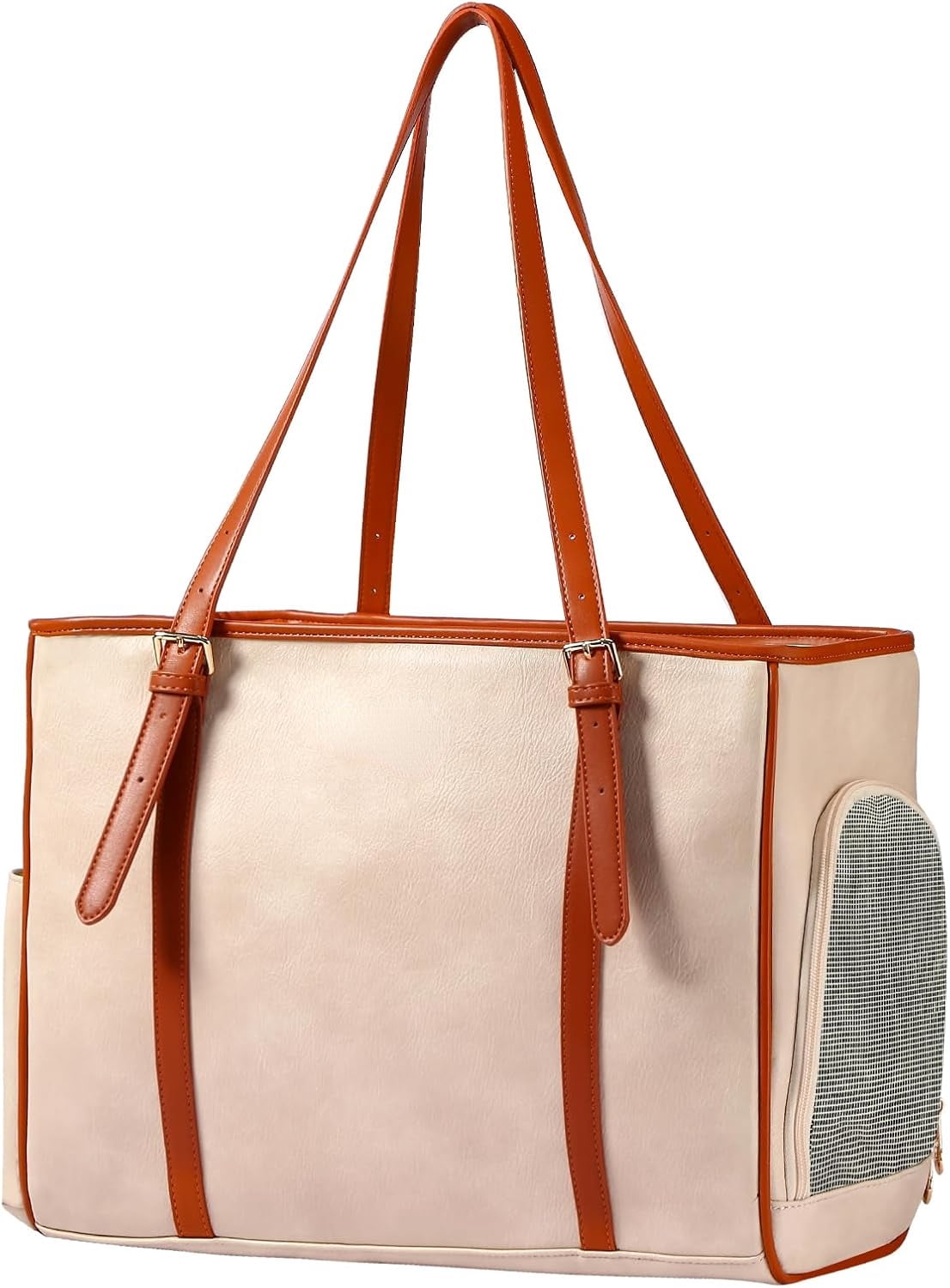 Fashion Dog Purse Pet Carrier Leather Bag for Small Dogs Cats Puppy, Portable Tote Bag Airline Approved Soft-Sided Carriers (Beign)