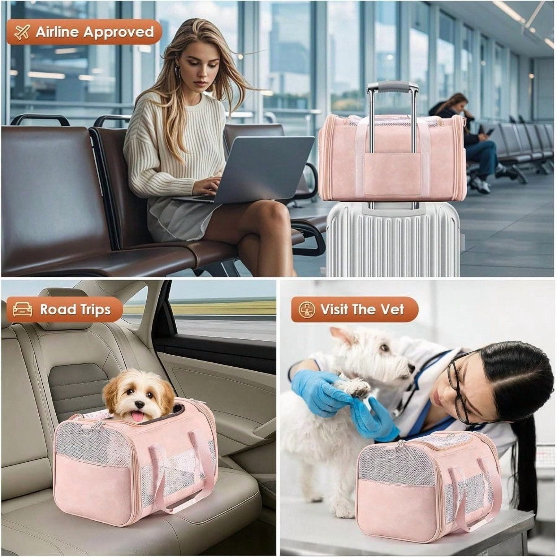 [Airline Approved for Hassle-Free Travel]Sized at 17.2″ x 11″ x 11.5″, this dog carrier fits under most airline seats, making it ideal for flights, road trips, or vet visits. Please check with your airline for exact cabin regulations before departure.