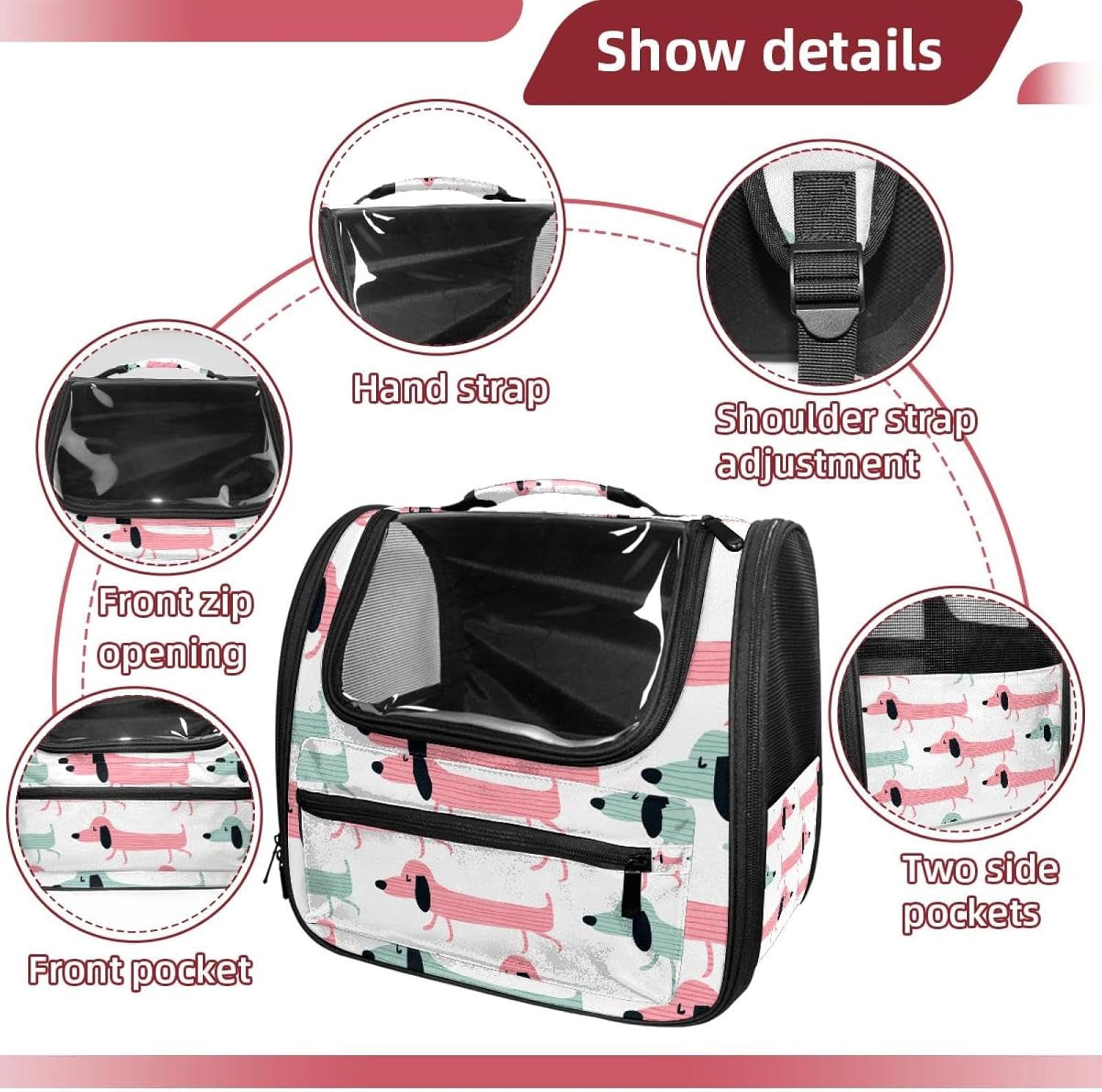 Funny Dachshund Dogs Pet Carrier Airline Approved Pet Carrier Bag Dog Carrier for Small Medium Cats Dogs Puppies Kitten