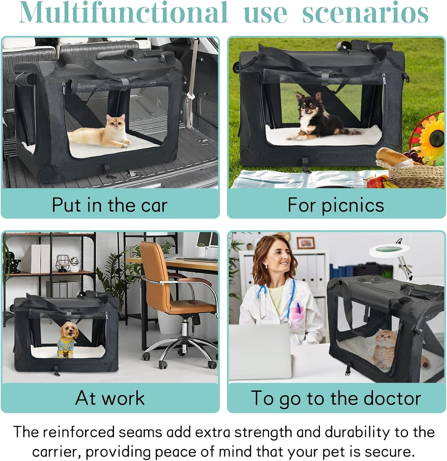 45LBS Large Capacity & Durable Material: cat carrier measures 24″L x 17″H x 17″D and can accommodate pets weighing up to 45lbs. Made with high-quality 600D polyester, this pet carrier is strong, durable, ensuring your pet stays safe and secure during travel.