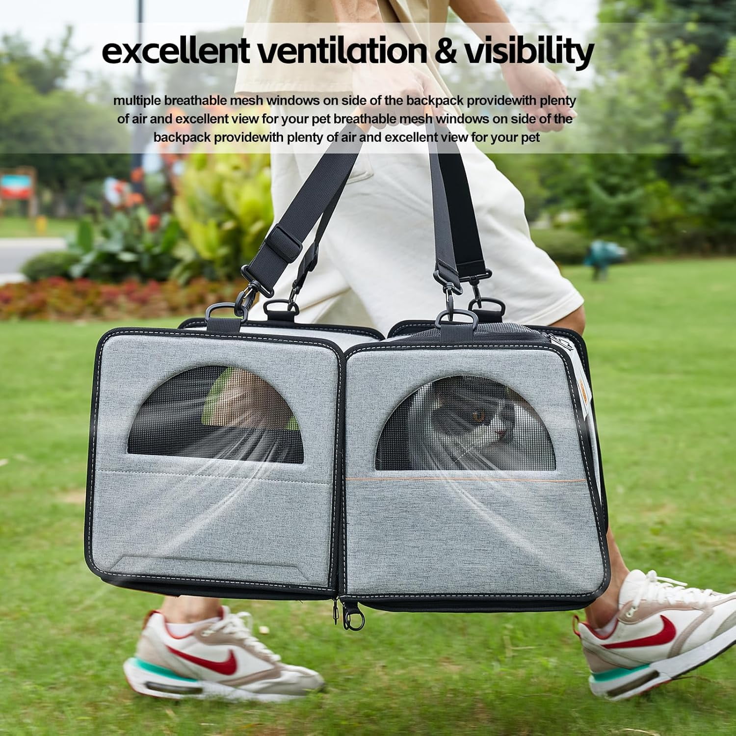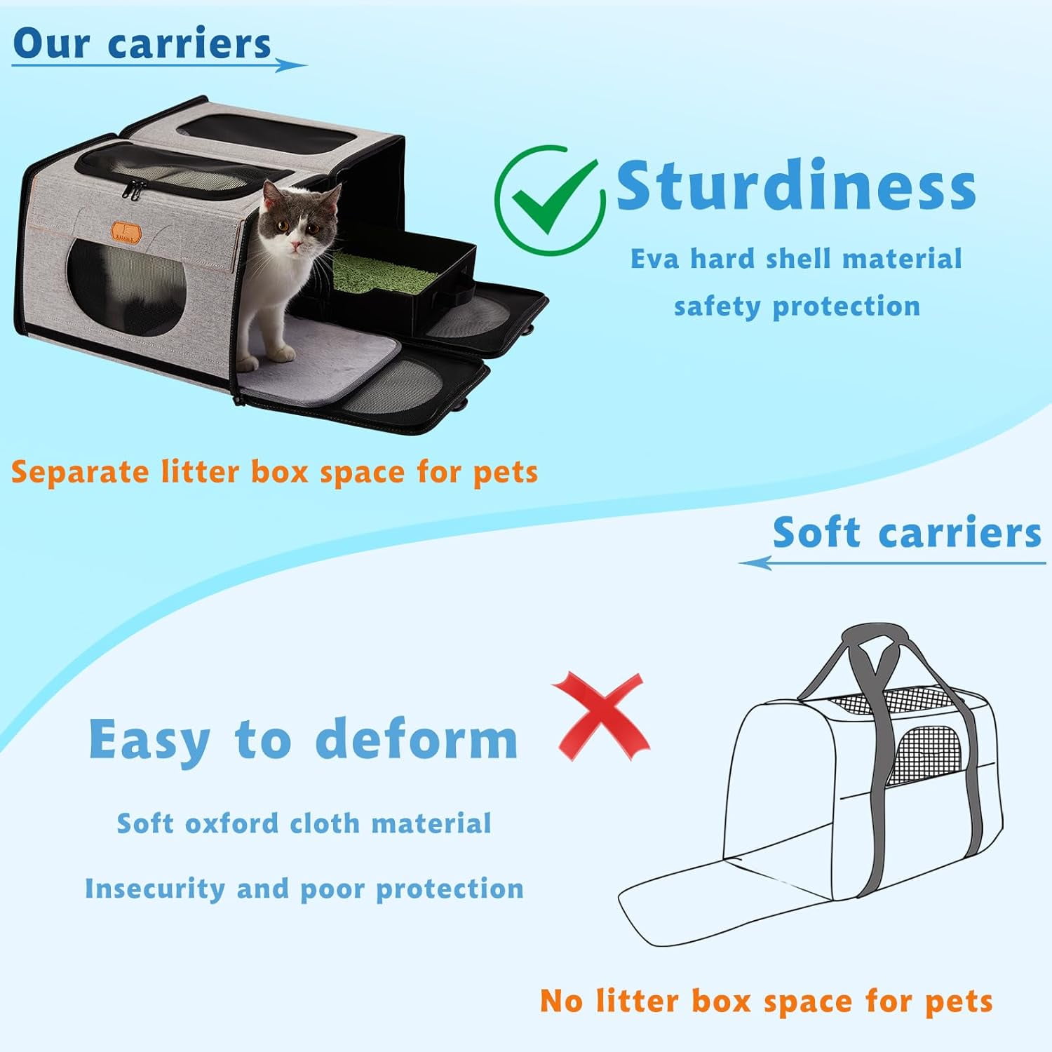Large Cat Carrier with Litter Box for Car Travel, Pet Carrier Bag 2-in-1,Double Cat Travel Transport Carrier for Long Distance, Collapsible Dog Crate, Cat Bag for Kitten 2 Cats