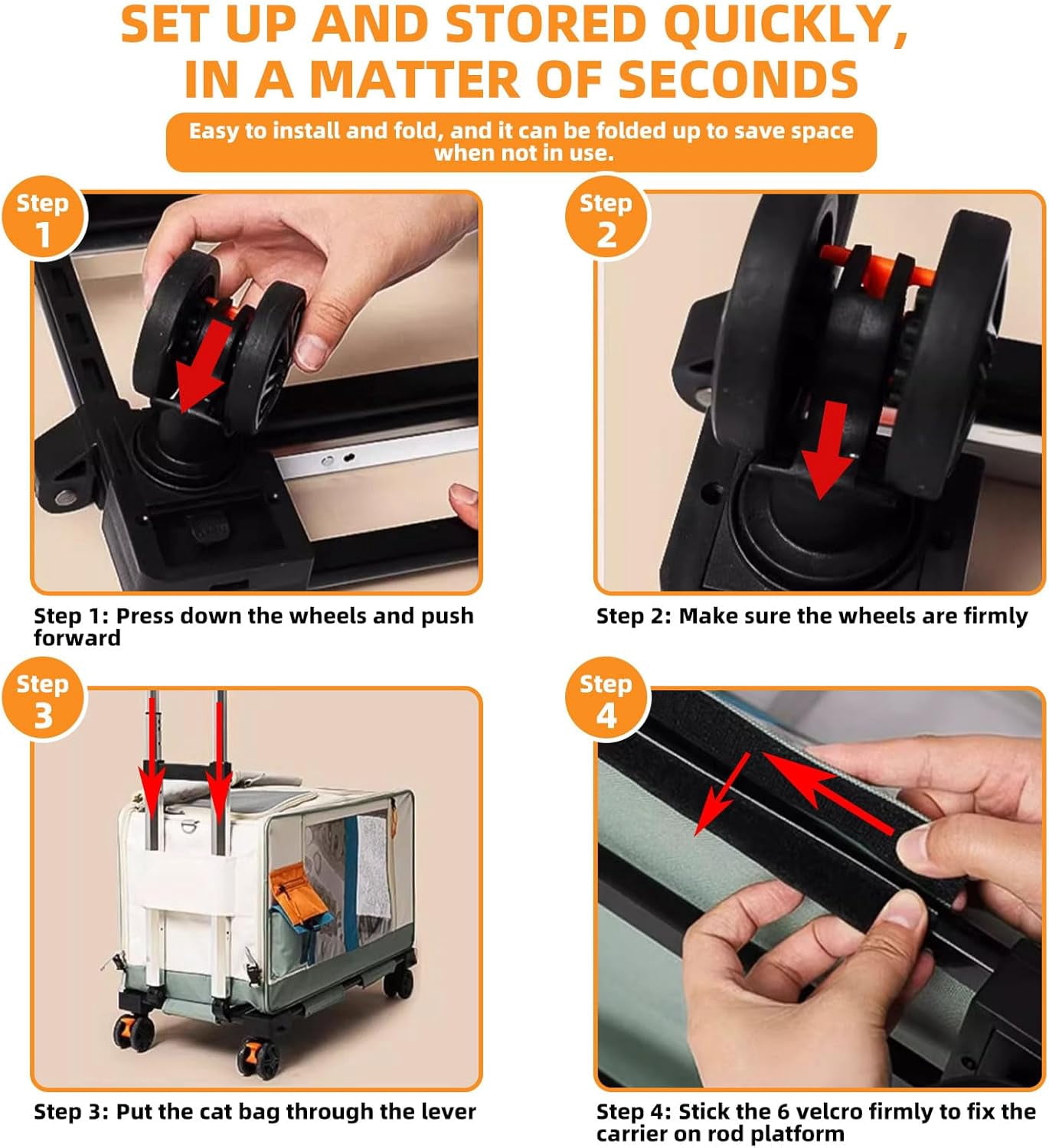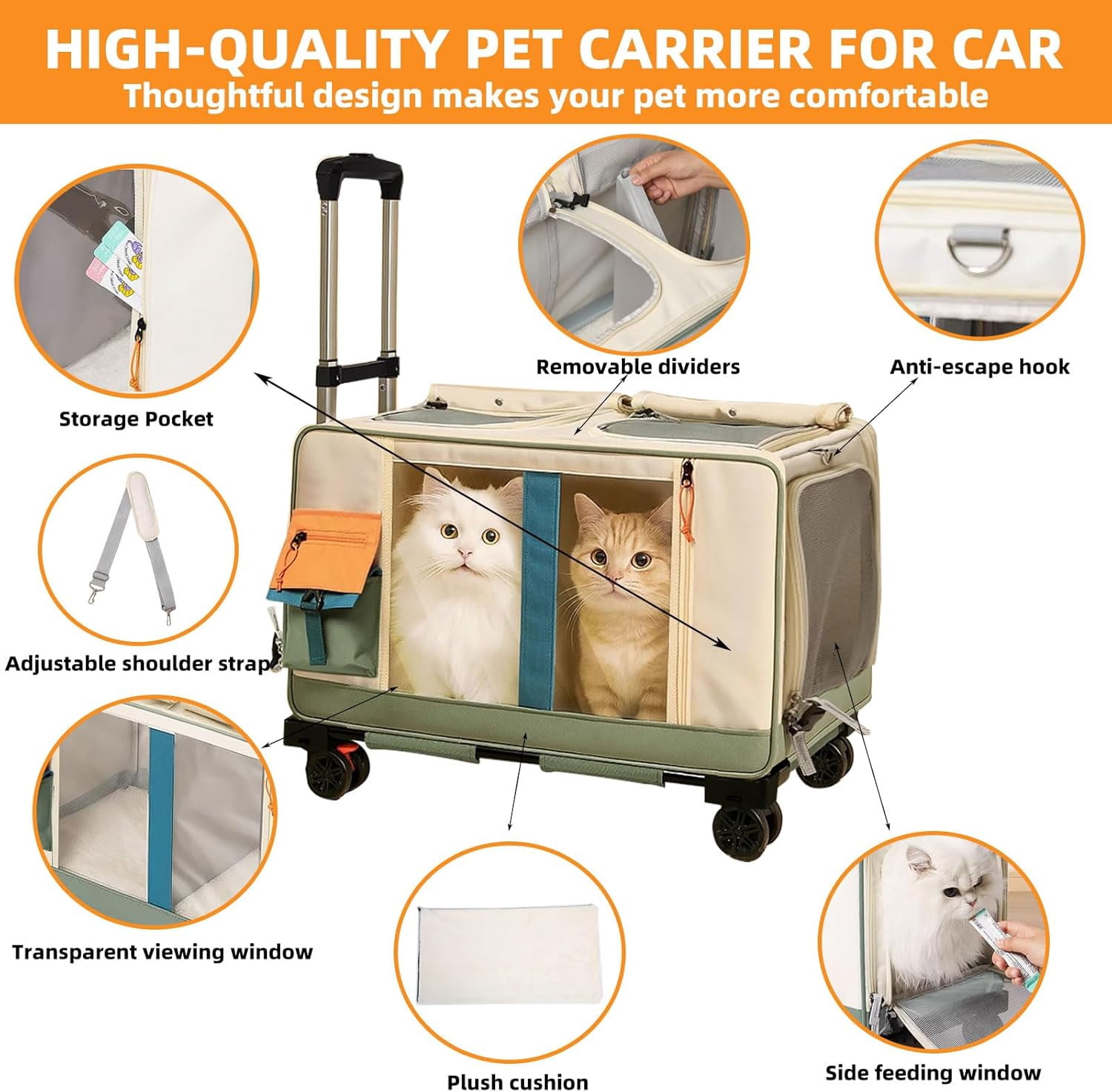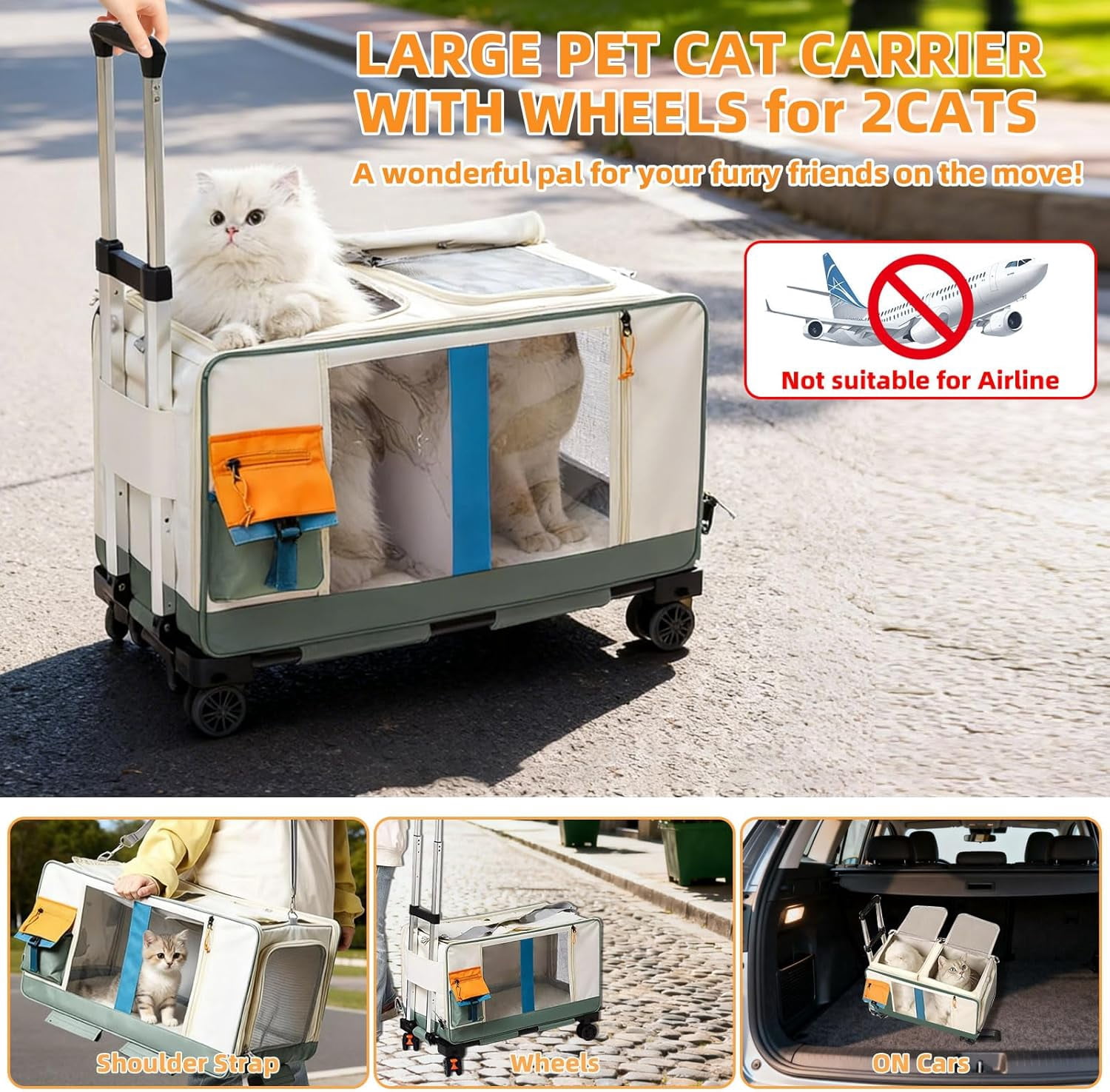 - WHEELED MOBILITY CATS ROLLING : Our pet carrier is equipped with 4 wheels that can be conveniently disassembled and assembled.Smooth-rolling mobility in any direction is ensured by the wheels.