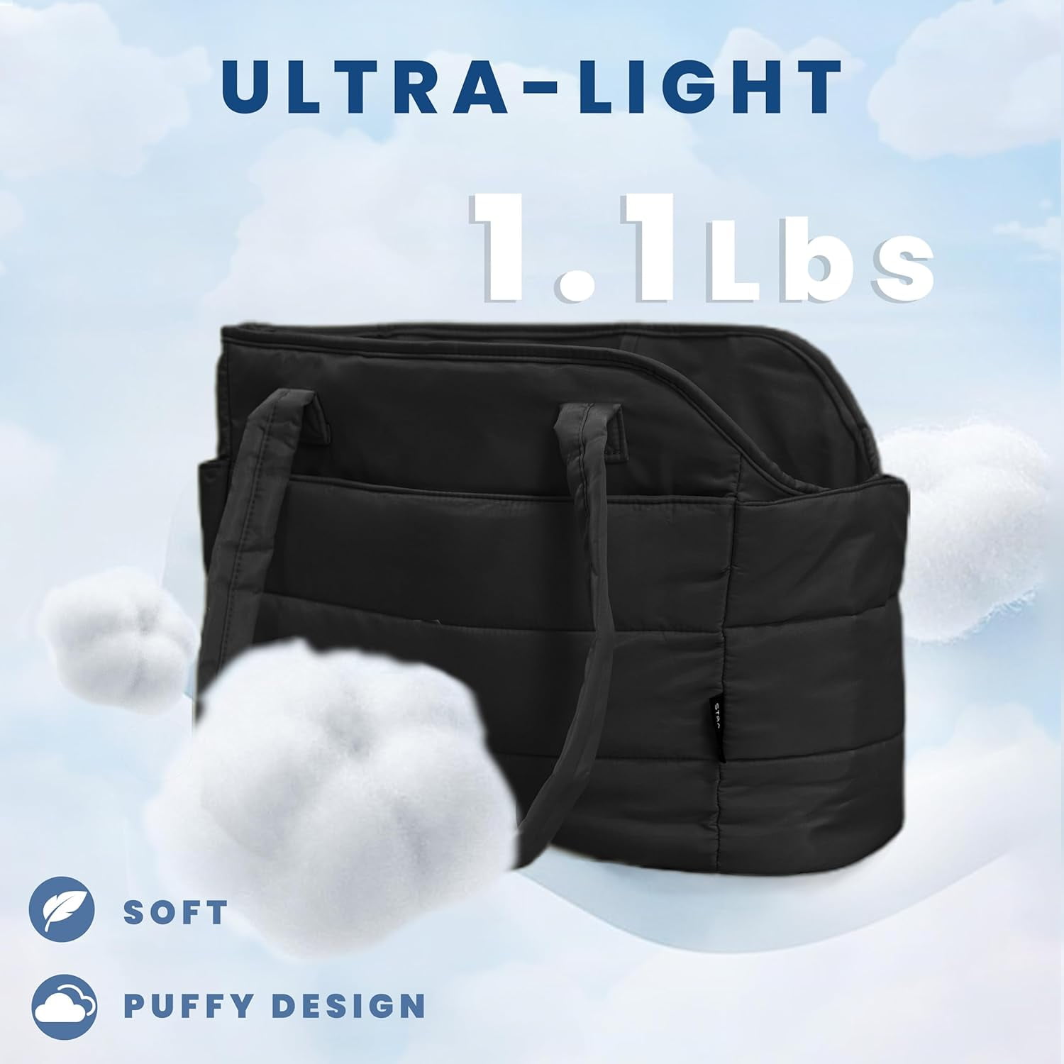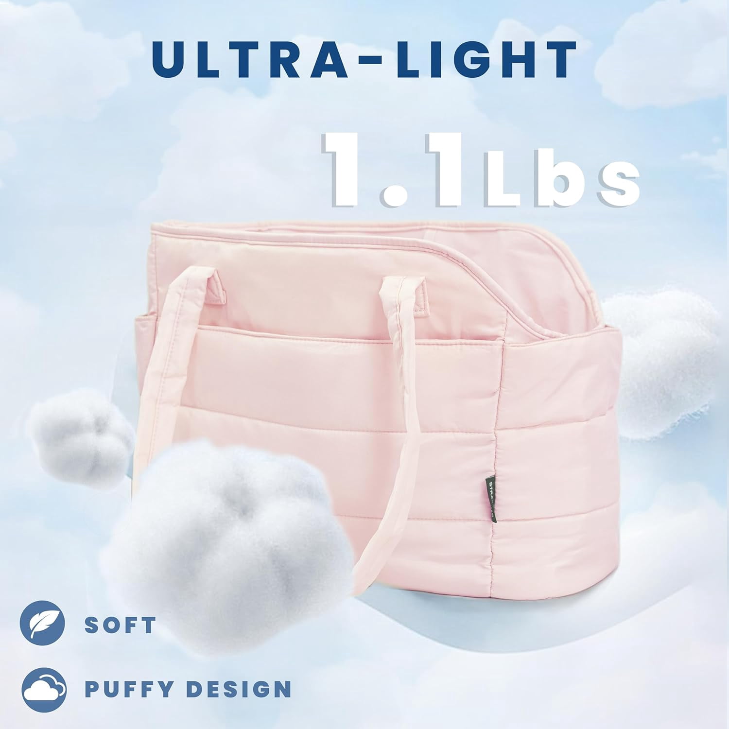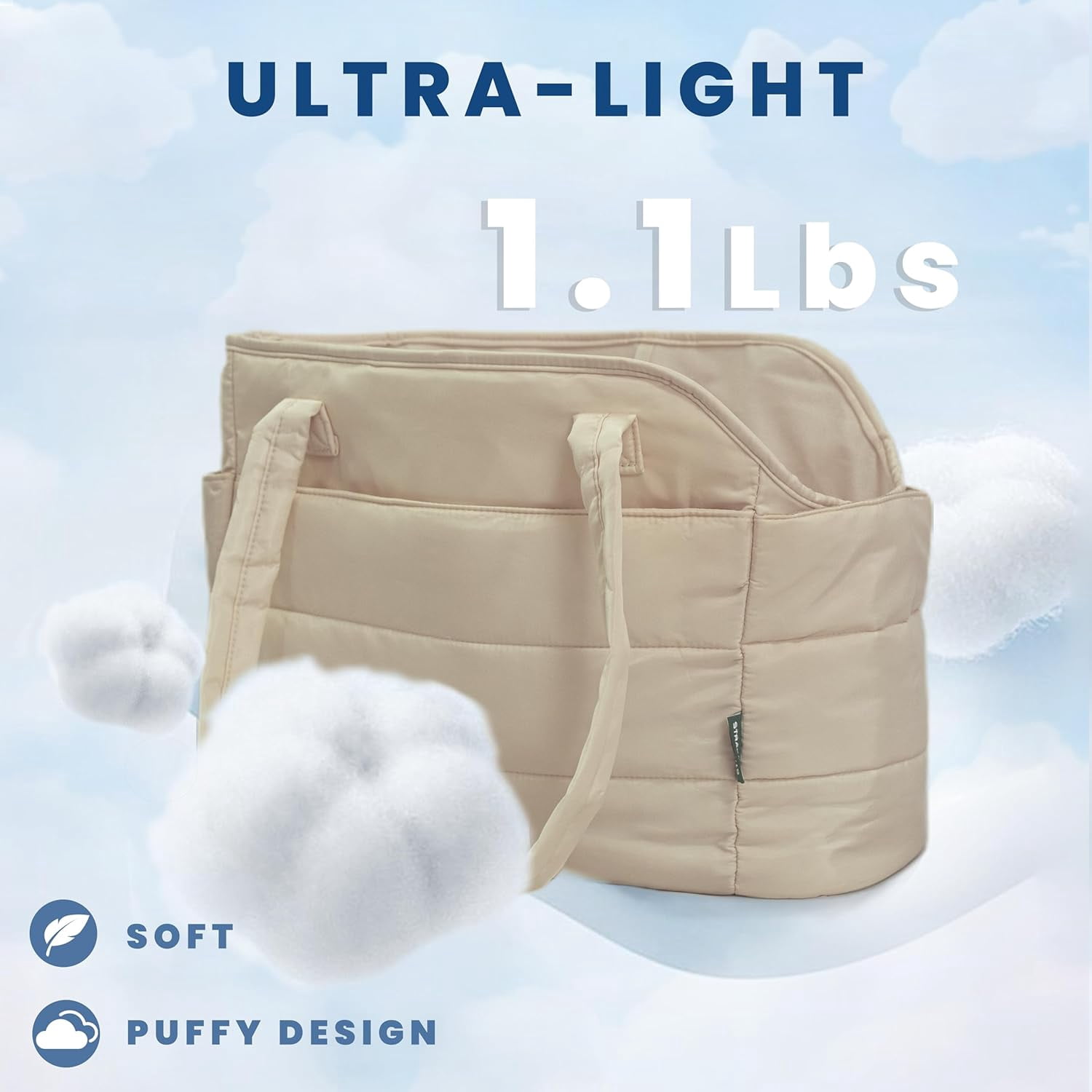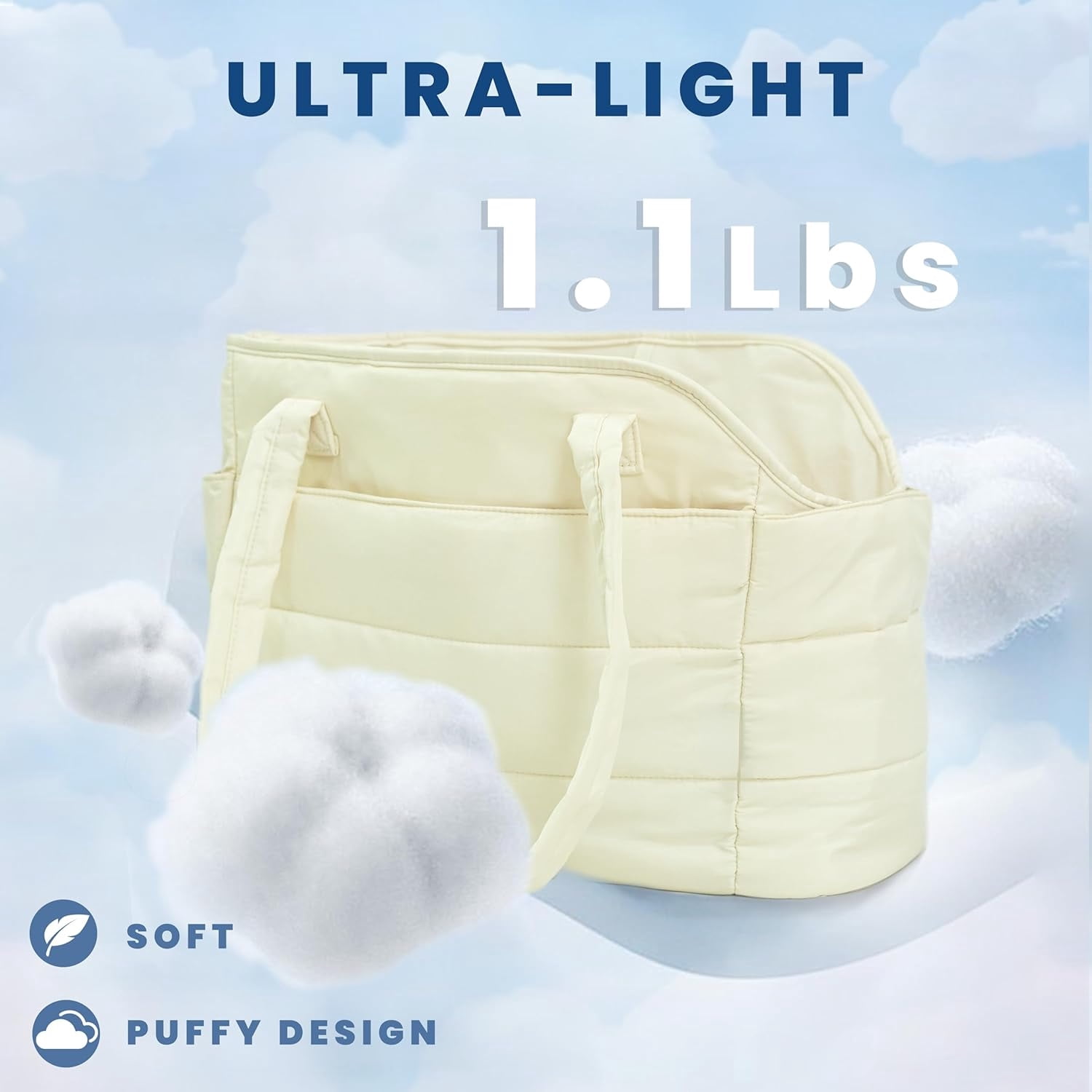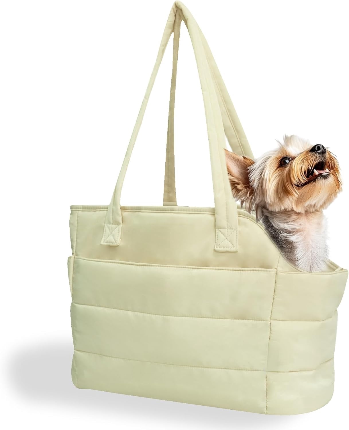 Ultra-Light & Stylish Puffy Design: Weighing just 1.1 lbs, this chic puffy dog carrier is crafted from ultra-light materials with a fashionable quilted exterior. The removable padded hard-bottom base provides strong, stable support. Perfectly sized at 17″L x 8″W x 12″H to comfortably carry small dogs up to 15 lbs (6.8 kg)—ideal for Chihuahuas, Yorkies, puppies, and other toy breeds.