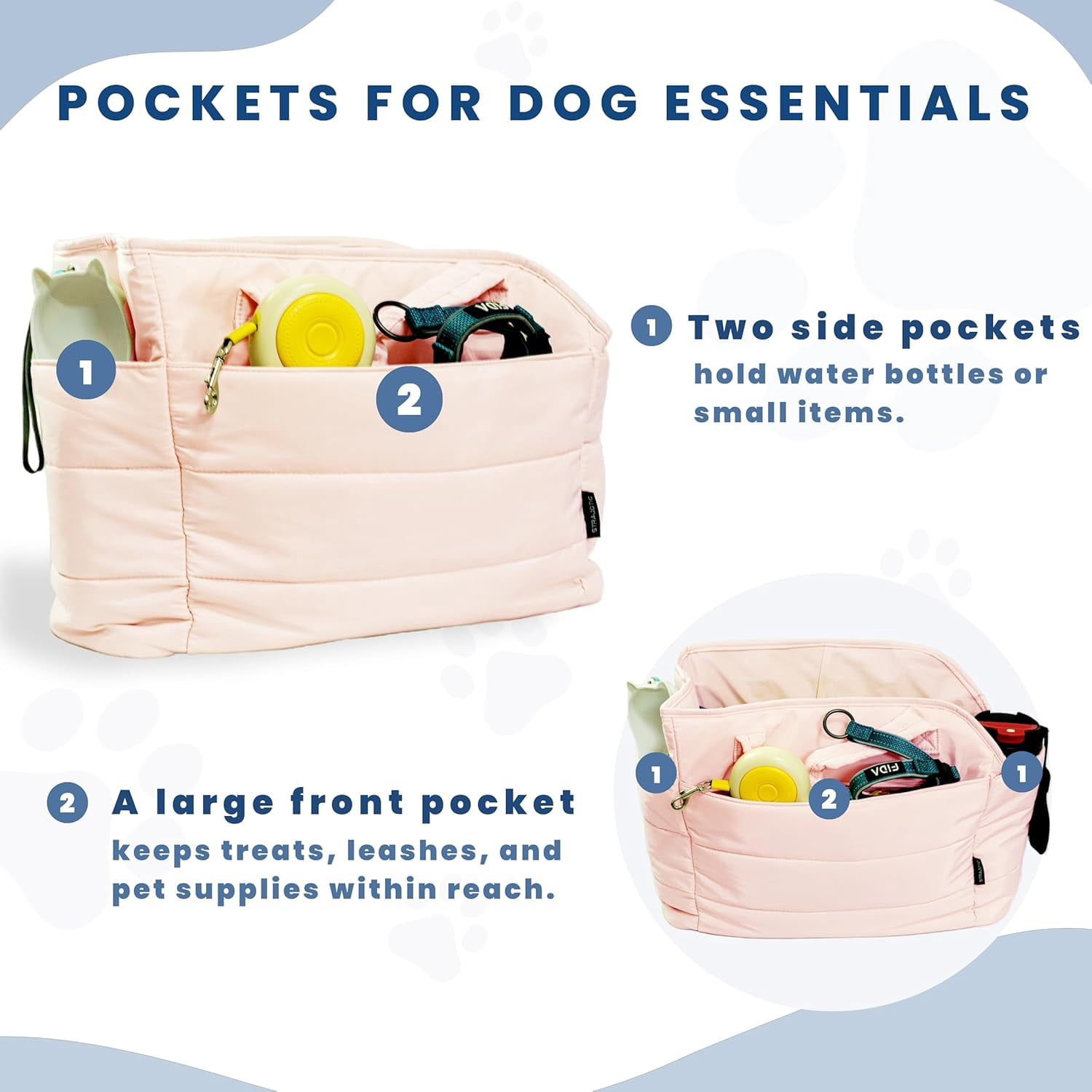 Storage Pockets for Dog Essentials: Stay organized with easy-access front and side pockets! Holds dog treats, leashes, poop bags, dog water cup, keys, phone, and more. A must-have dog walking accessory for hands-free pet travel.