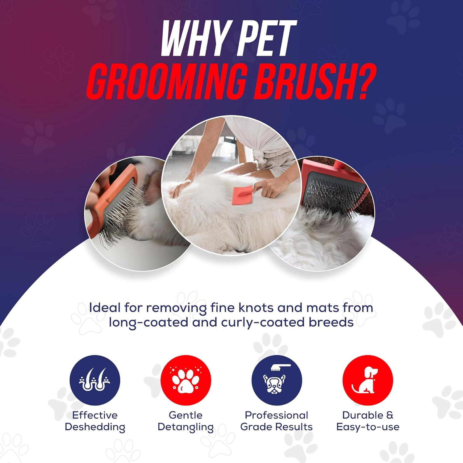 - Professional Grooming Brush – Removes loose hair, tangles & mats while keeping your dog’s coat smooth & fluffy