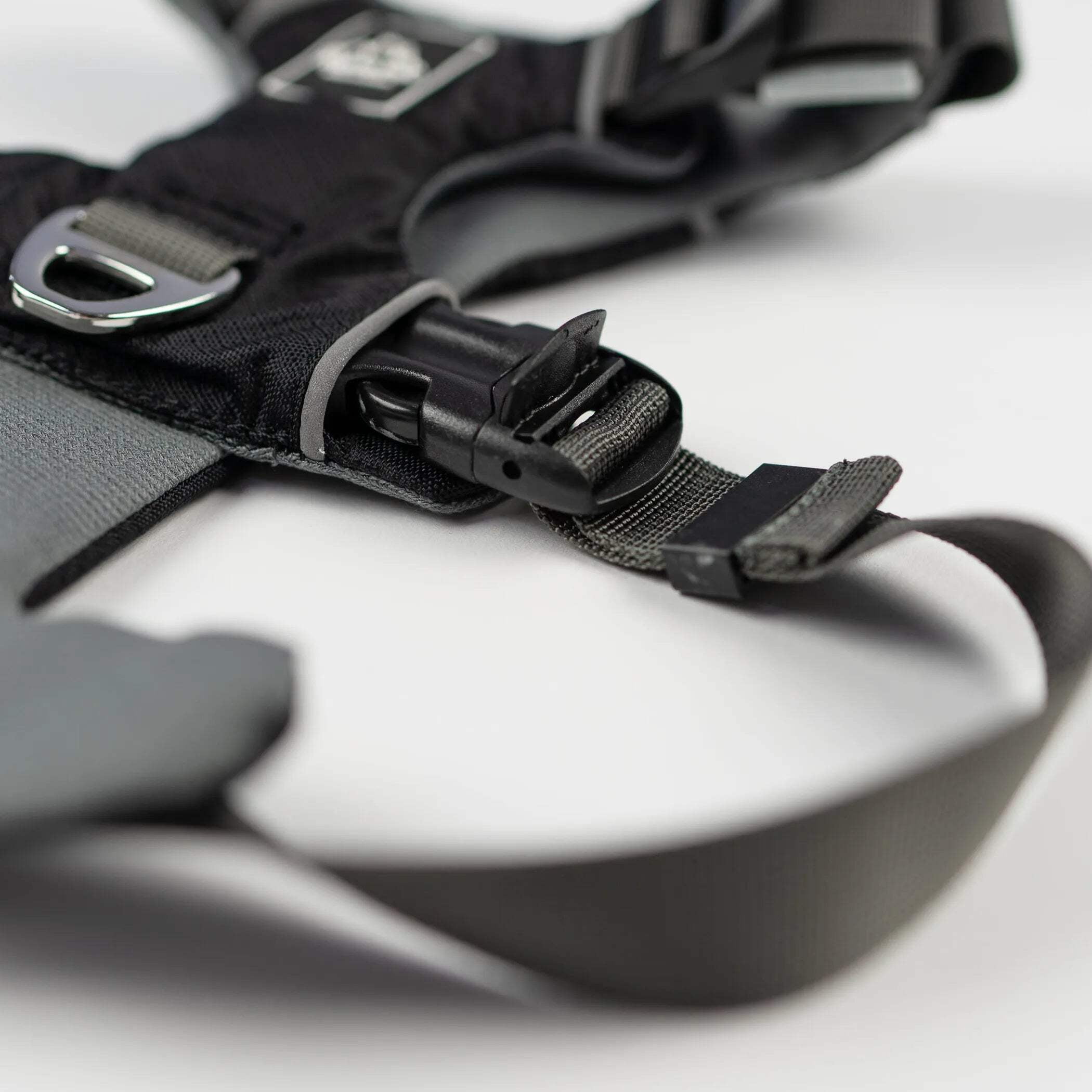 EZ FIT BUCKLES AND STRAPS: We’ve created a revolutionary buckle and strap design for our harnesses. Our EZ FIT buckles and latches have a locking mechanism which allows you to size the harness quickly and easily to your dog, creating the perfect fit. Then simply lock the buckles in place and the harness will stay perfectly sized for your pup! These features prevent the straps from loosening as your dog moves and allow you to find the perfect fit for your dog.