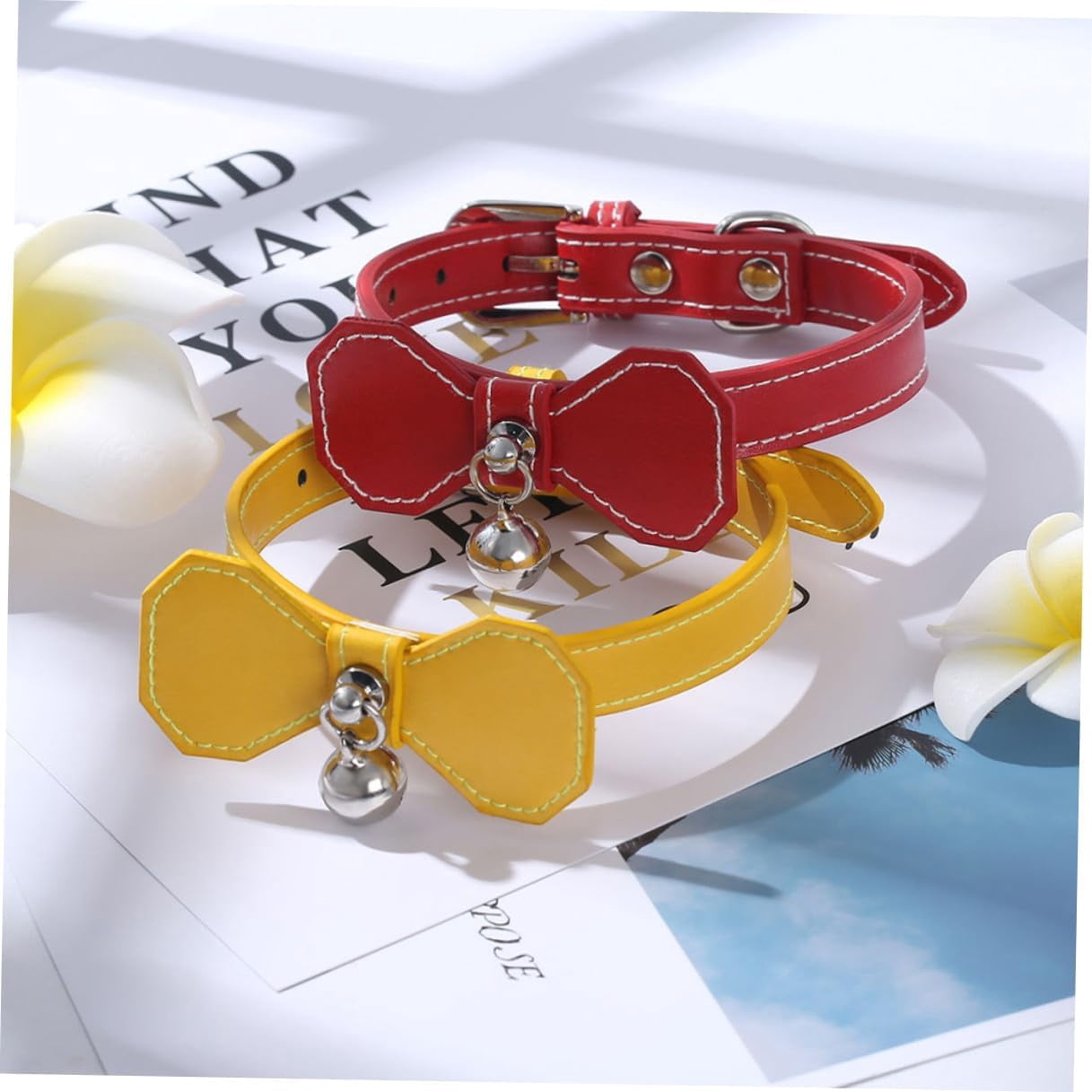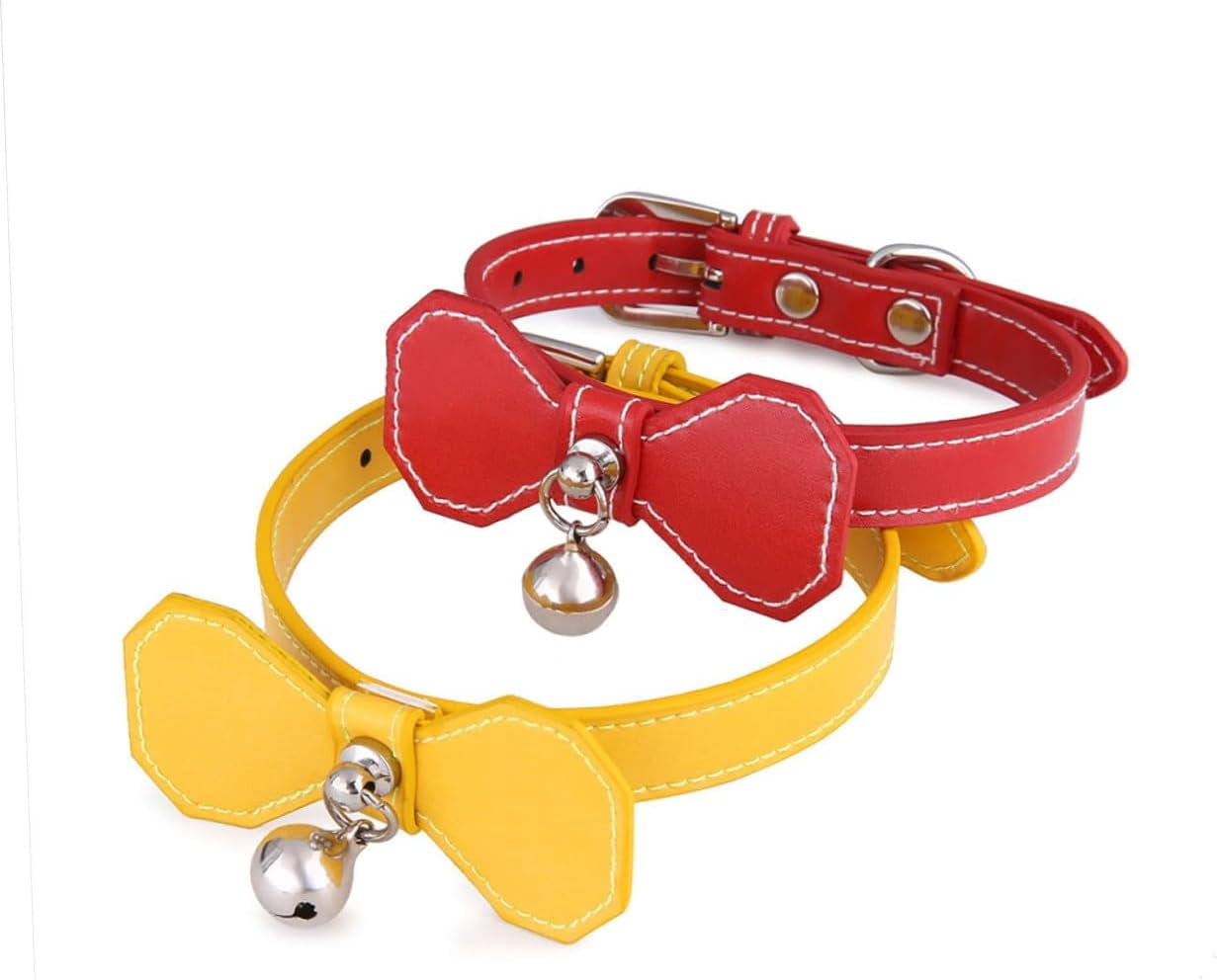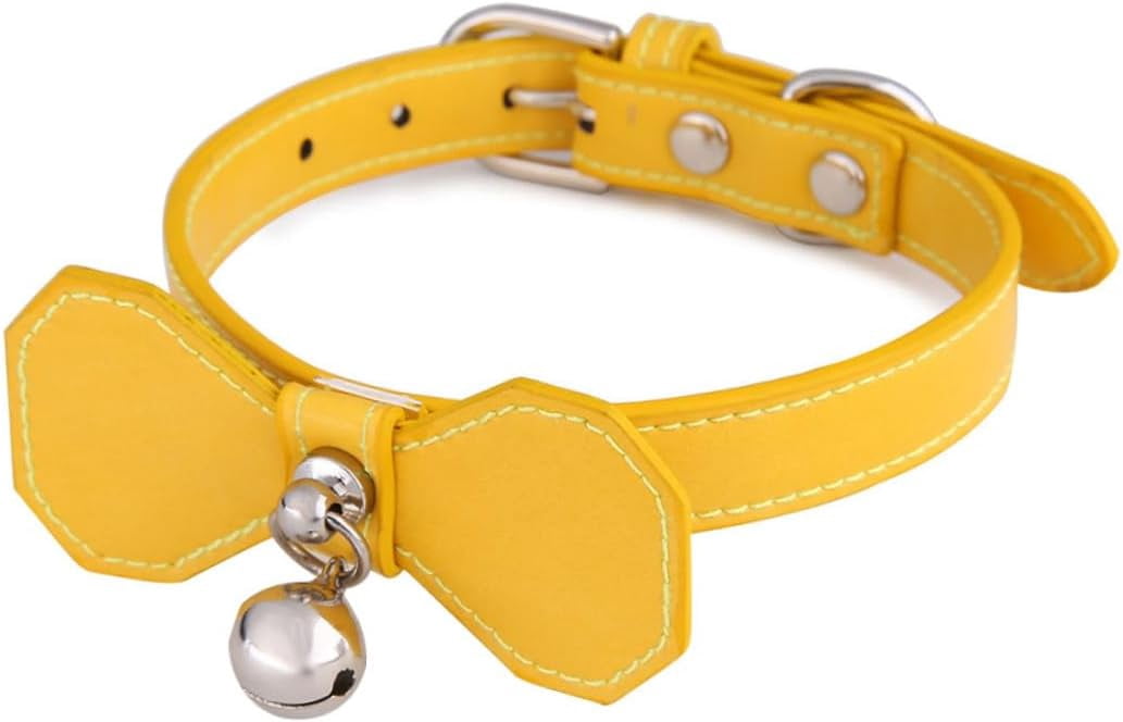 Pet Bell Collar with Yellow Bowknot, Adjustable Basic Dog & Cat Collar for Small Puppies and Cats, Lightweight Neck Ring for Daily Use