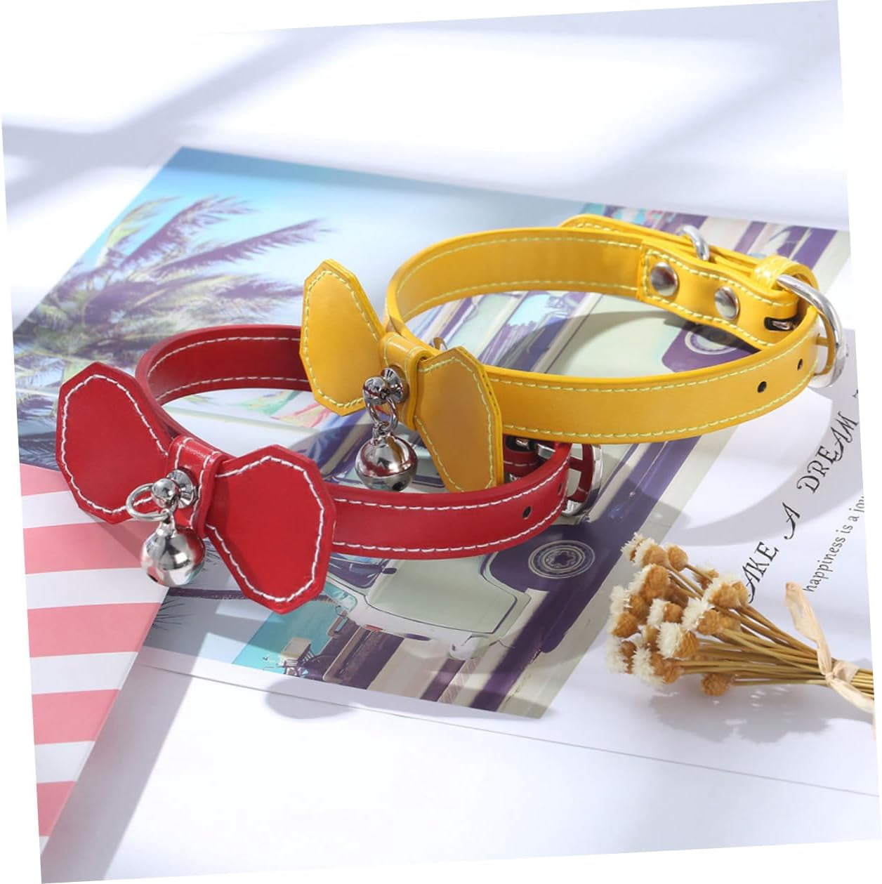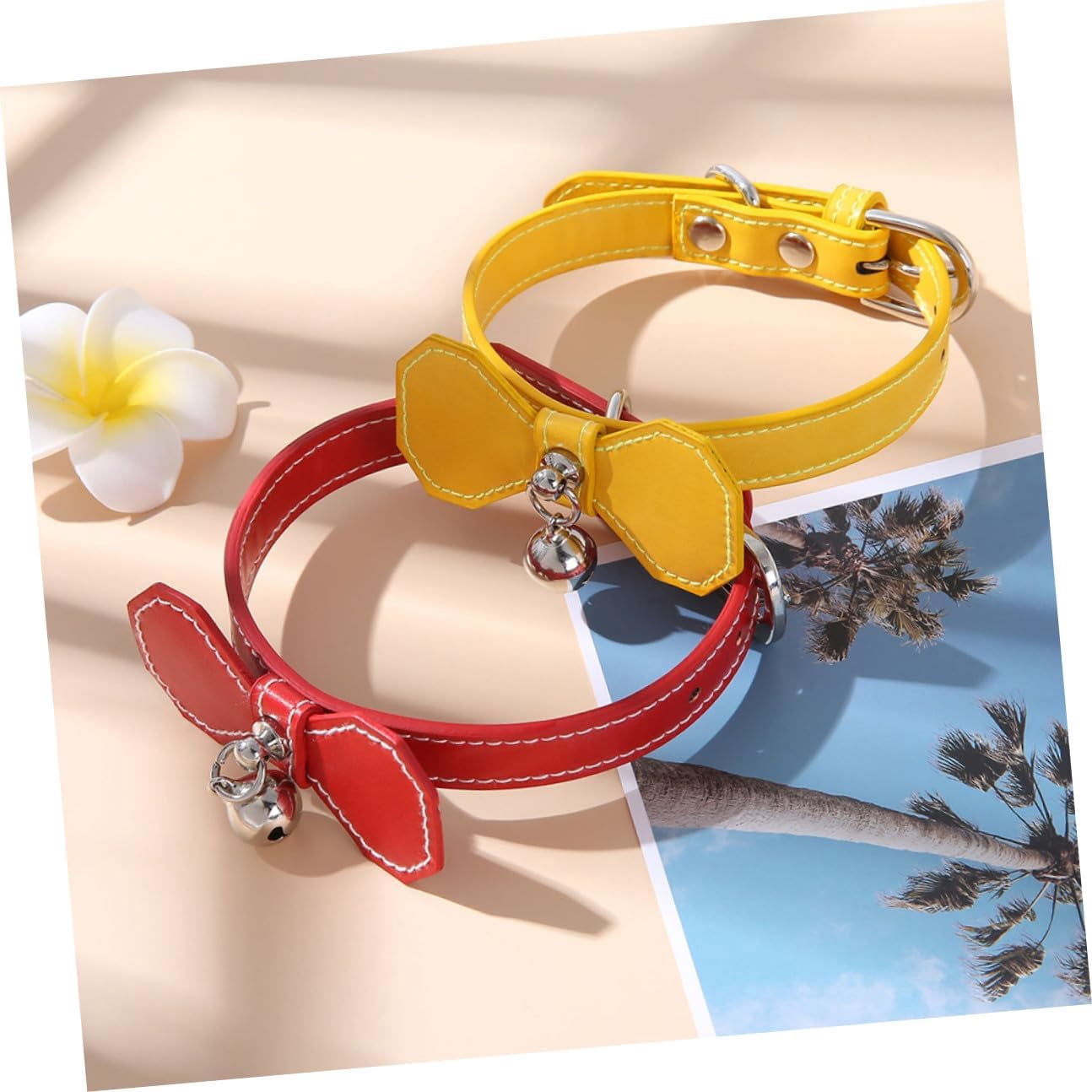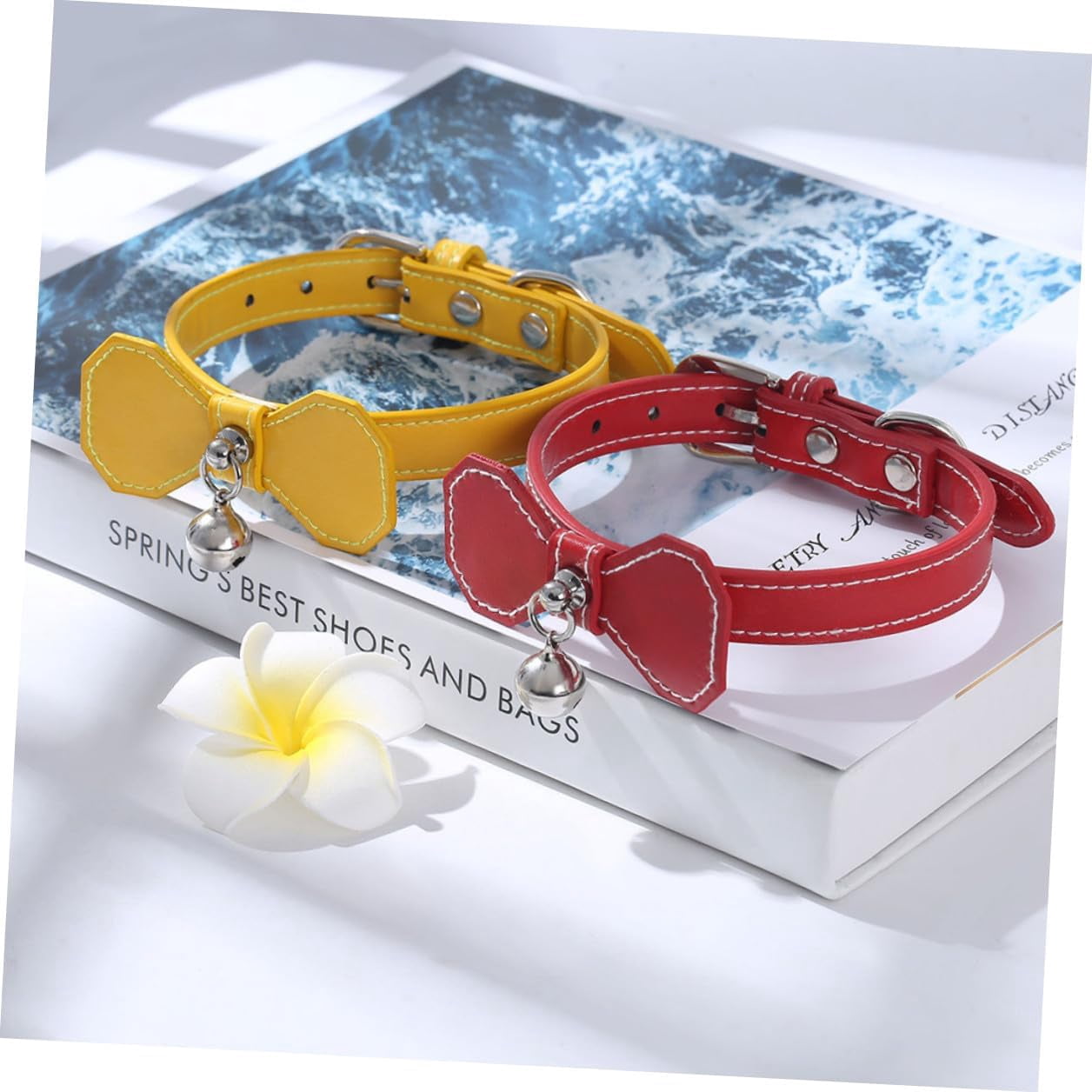 Pet Bell Collar with Yellow Bowknot, Adjustable Basic Dog & Cat Collar for Small Puppies and Cats, Lightweight Neck Ring for Daily Use