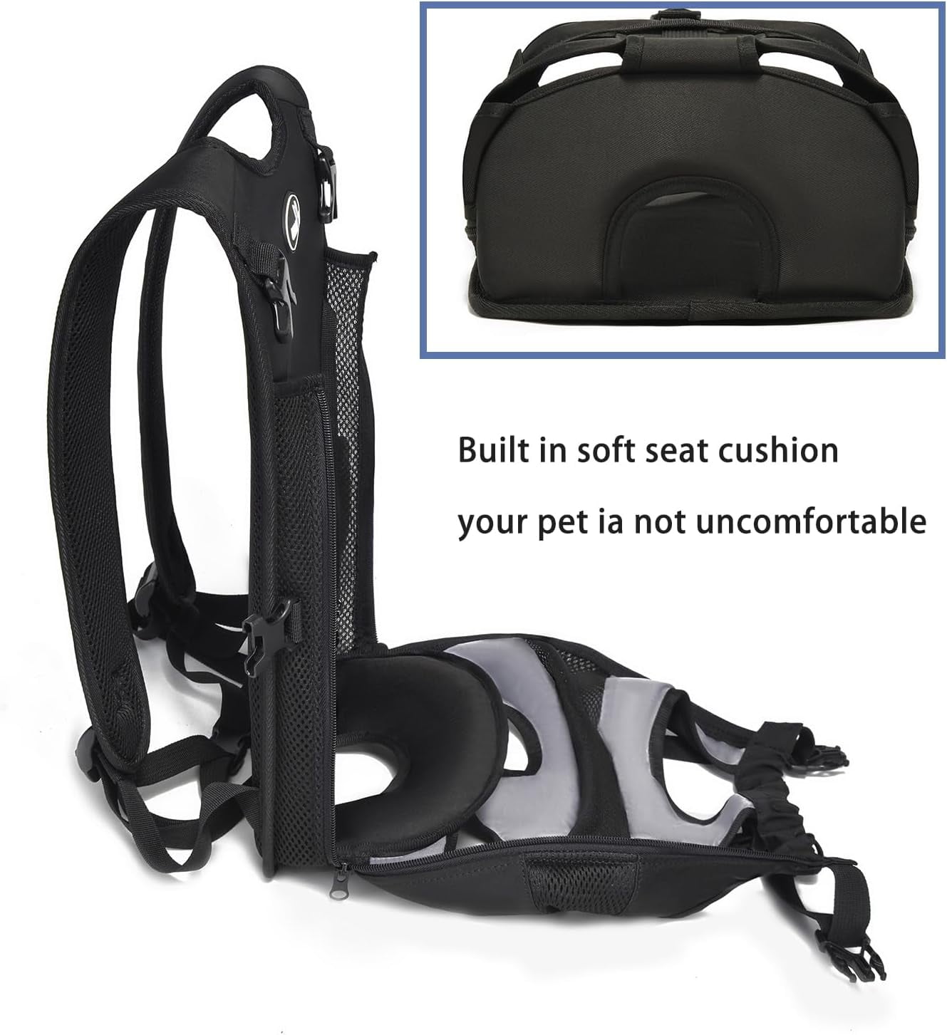 - ðãCOMFORTABLE & EASY TO CLEANã: â The ventilated mesh design both sides of this carrier bag makes air circulation efficient. â¡The pet crotch fabric is easy to clean and does not stain. â¢The and tail openings are designed with soft wrap-around edges to make your pet comfortable.