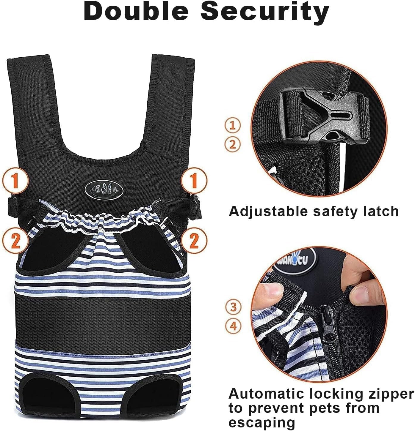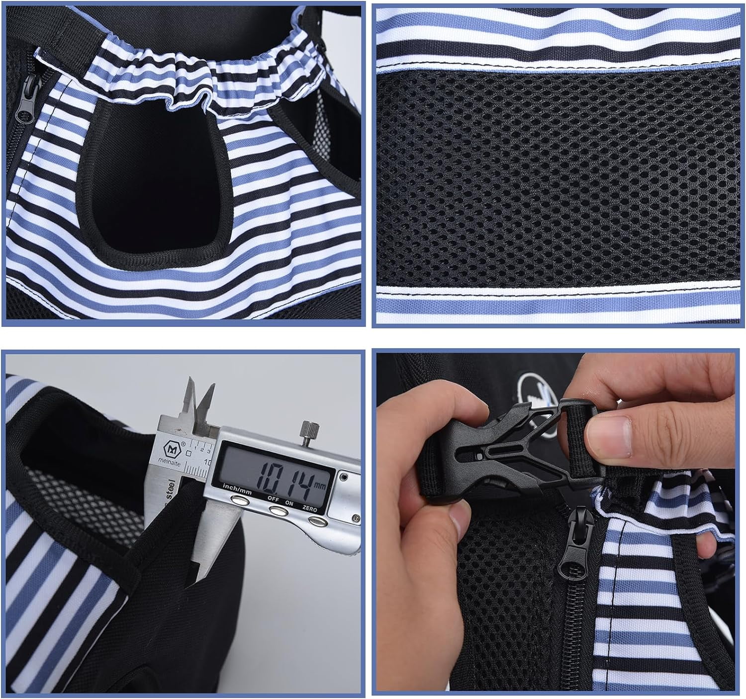 - ðãADJUSTABLE ANTI-ESCAPE DESIGNã: â Stretchable side straps for pets of different sizes. â¡Double side zippers for quick pet access and automatic zipper lock design prevents pets from propping or grabbing the zipper open.