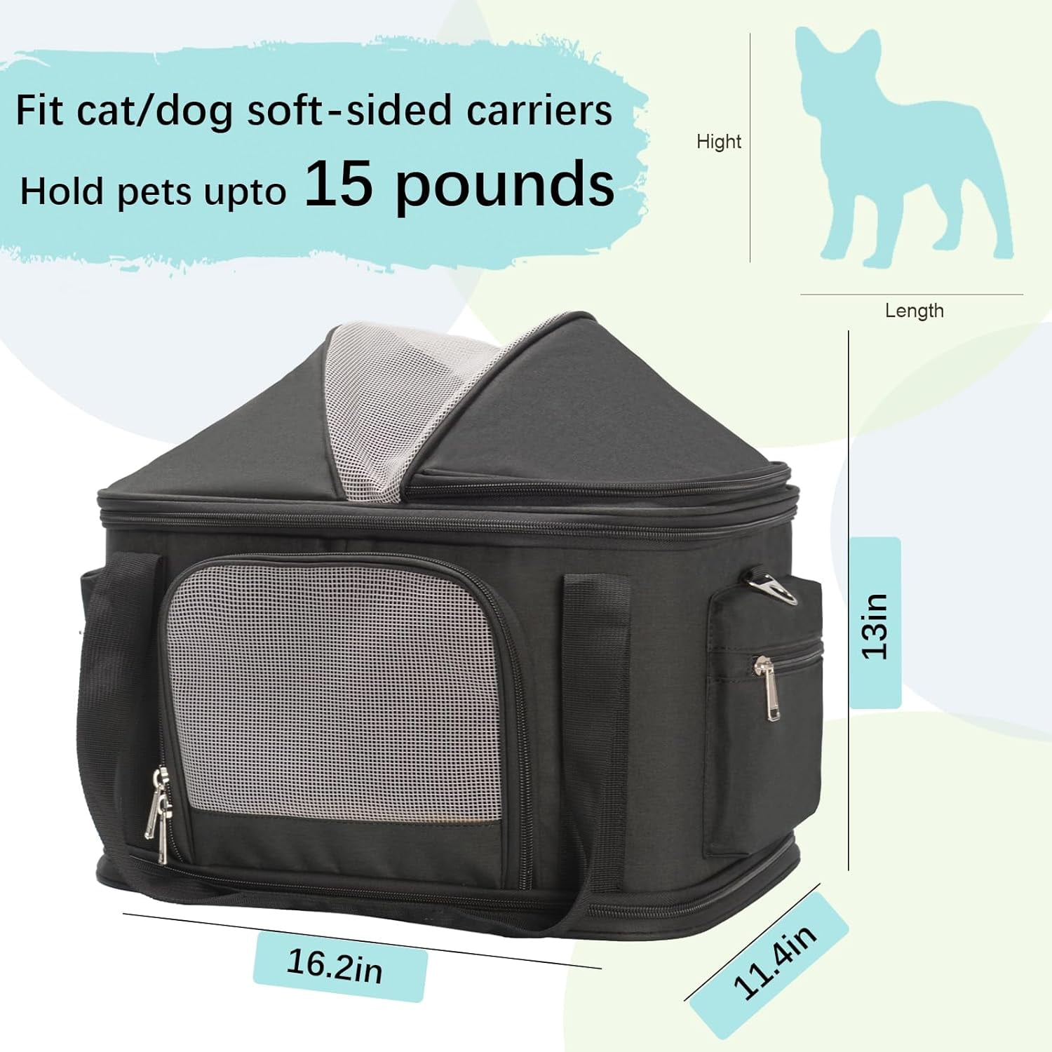 Spacious Pet Bag Carrier:Designed with a roomy interior to give your pet plenty of space to sit, lie down comfortably. Carrier Dimensions(LxWxH): 15inch x 7.5inch x 12.2inch. Interior Dimensions(LxWxH): 14.2inch x 7.5inch x 10.6inch. We recommend this pet carrier for pets under 10 lbs. Please check the dimensions carefully before purchasing to ensure it fits your dog/cat/rabbit/other pets