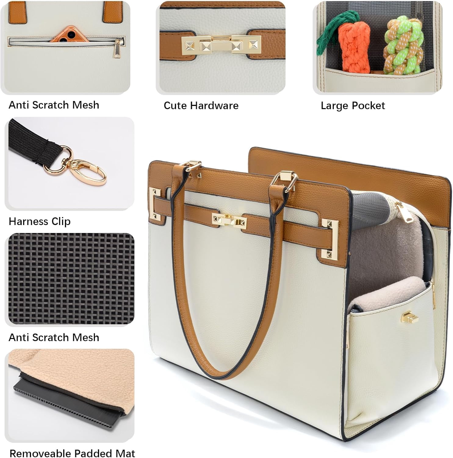 Stylish & Functional Design Pet Carrier: Modern, chic look with sturdy and water-resistant vegan leather—perfect for fashionable pet owners who want style without sacrificing practicality. And an elastic safety leash is included inside to help prevent your pet from jumping or escaping