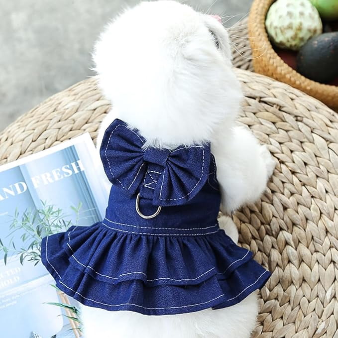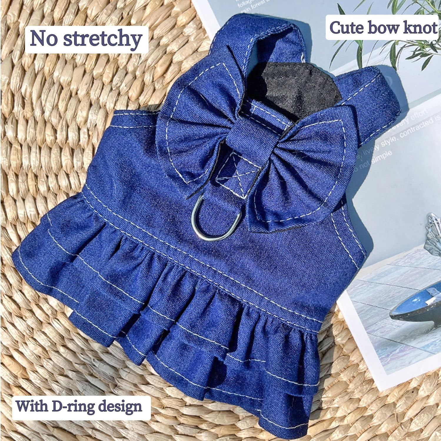 Pet Dog denim Clothes,Puppy Denim Dress with D-Ring & Cute Bowknot Costume for Small Dogs & Cats,T-Shirt Stylish Pet Summer Apparel & Dog Harness Dress