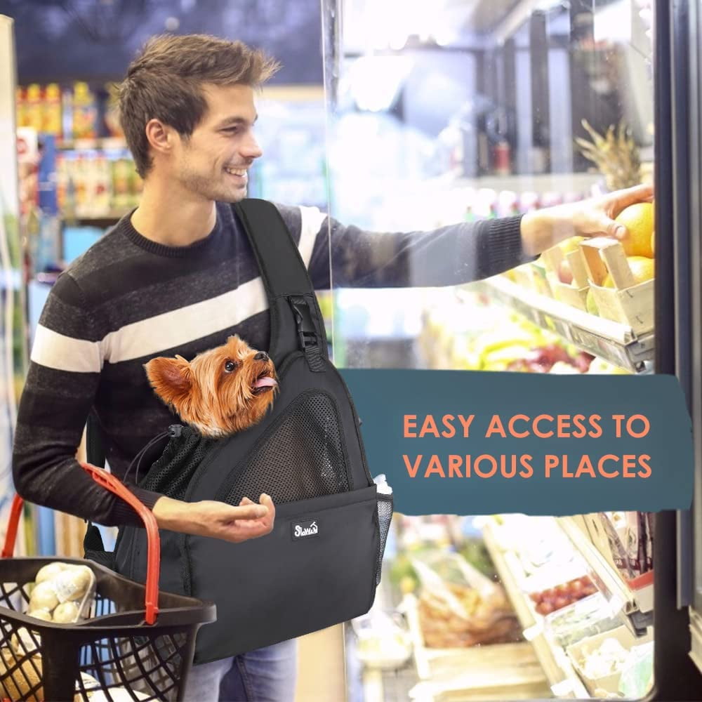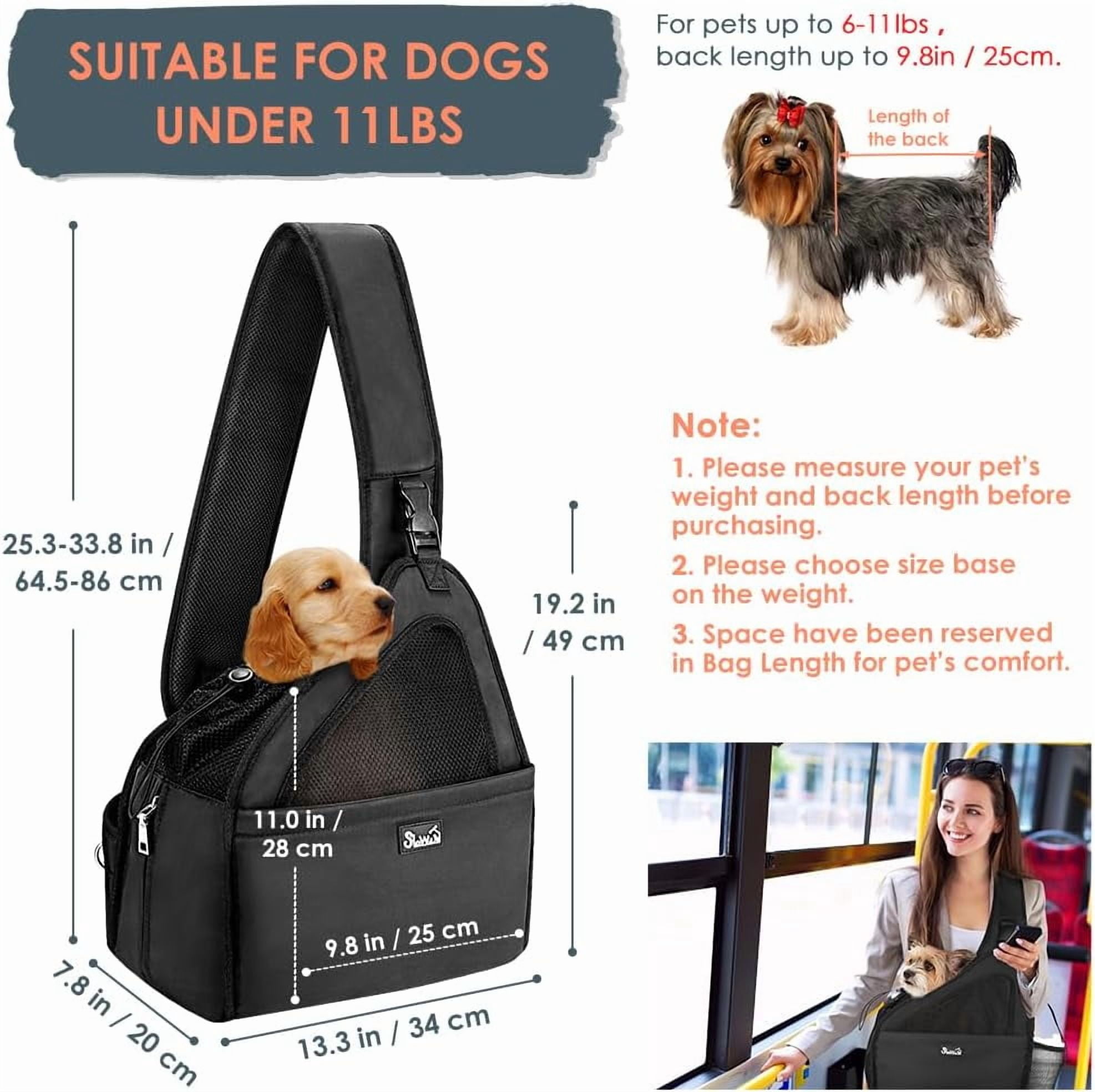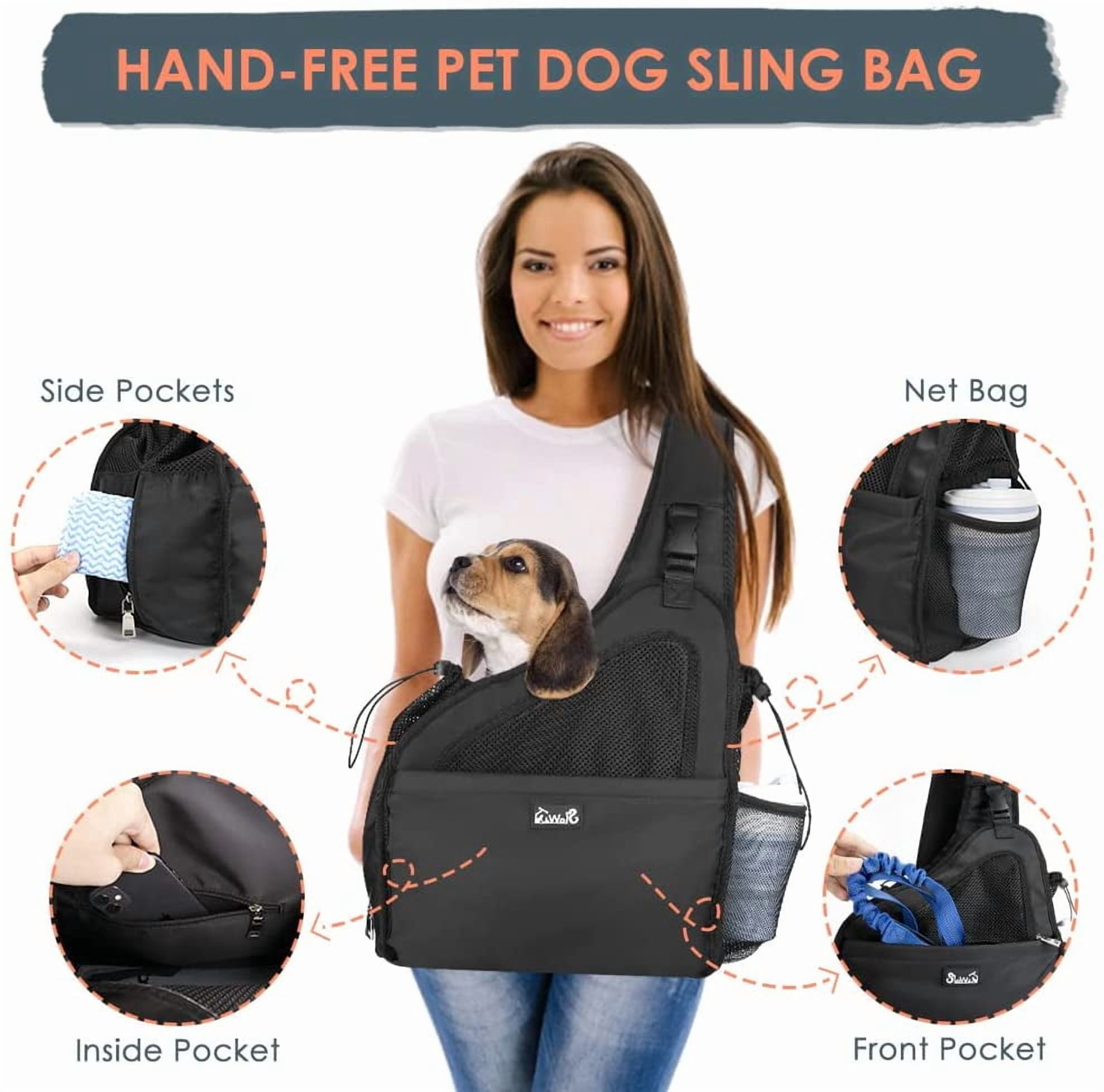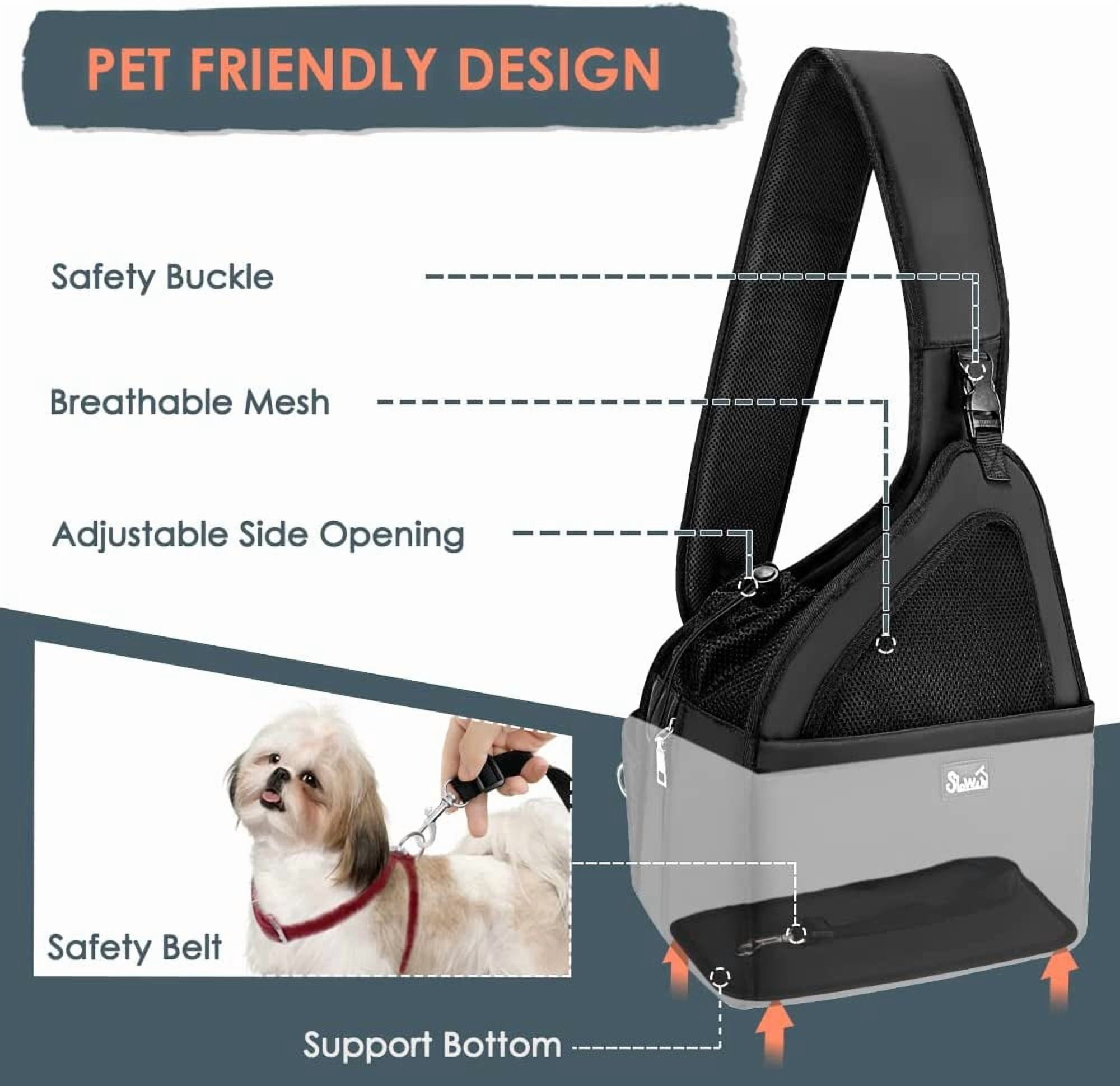 Pet Dog Sling Carrier, Hands Free Hard Bottom Papoose Small Animal Puppy Up to 11 lbs Travel Bag Tote Breathable Mesh Support Adjustable Padded Strap Pocket Safety Belt Machine Washable
